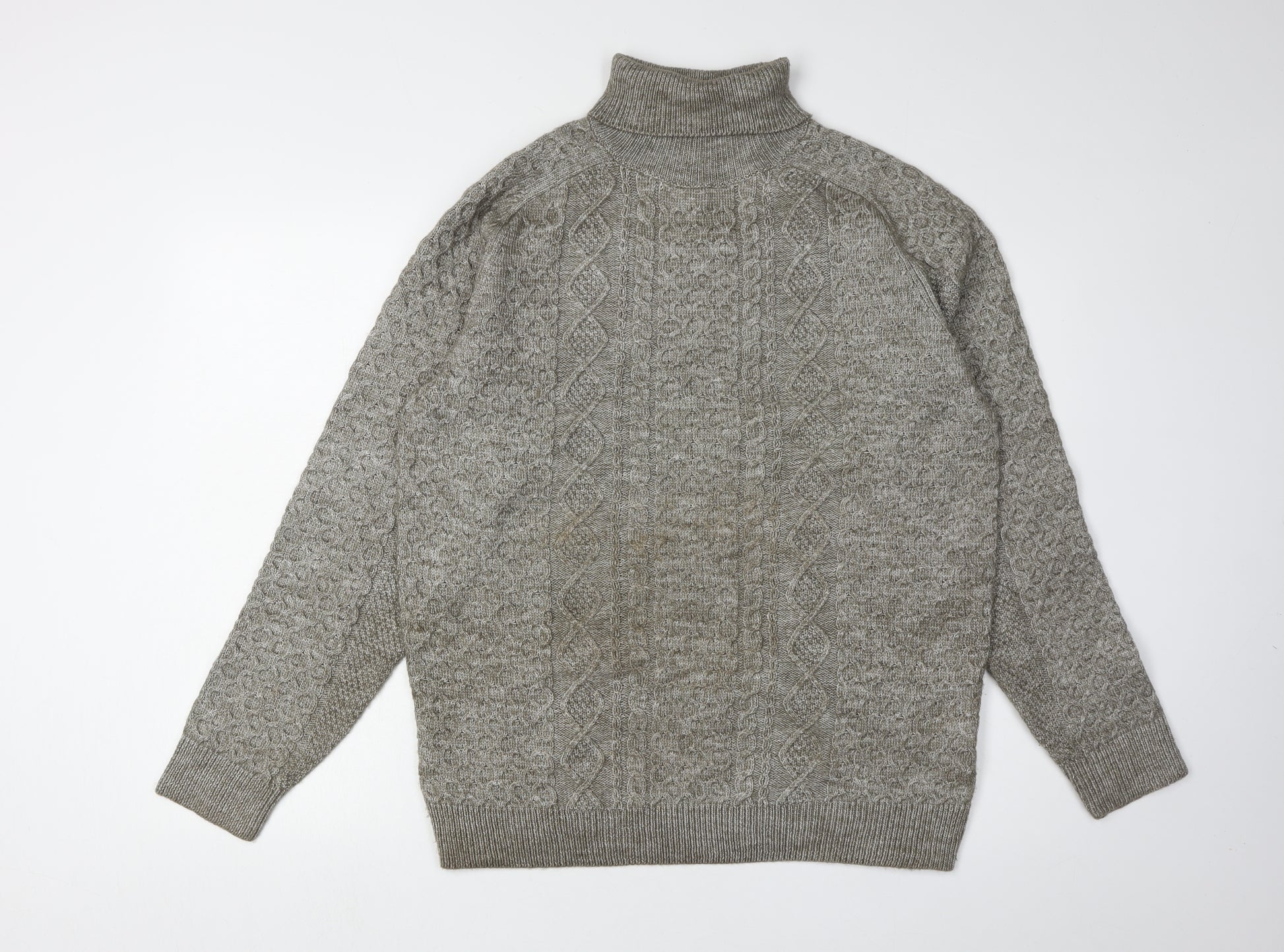 Stay cosy and stylish with this Marks and Spencer men's grey pullover jumper, perfect for adding a touch of sophistication to any wardrobe. Crafted with care from a quality blend of materials, including 68% polyester, 26% acrylic, and 6% wool, this jumper ensures warmth and comfort without compromising on style. The high neck design offers additional protection against chilly winds, making it an ideal choice for autumn and winter seasons. This regular fit jumper features a classic cable-knit style, combining texture and elegance to your attire. Its versatile grey colour easily complements any outfit, making it suitable for various casual occasions. Whether you're heading to a casual get-together or enjoying a relaxed day out, this jumper will keep you looking effortlessly refined. Designed for machine washability, maintenance is easy, ensuring your jumper remains in top condition all season long. With original tags attached, this jumper is brand new, providing the assurance of buying a fresh addition to your collection. Upgrade your wardrobe with this timeless piece from Marks and Spencer, a perfect choice for those who appreciate quality and style.