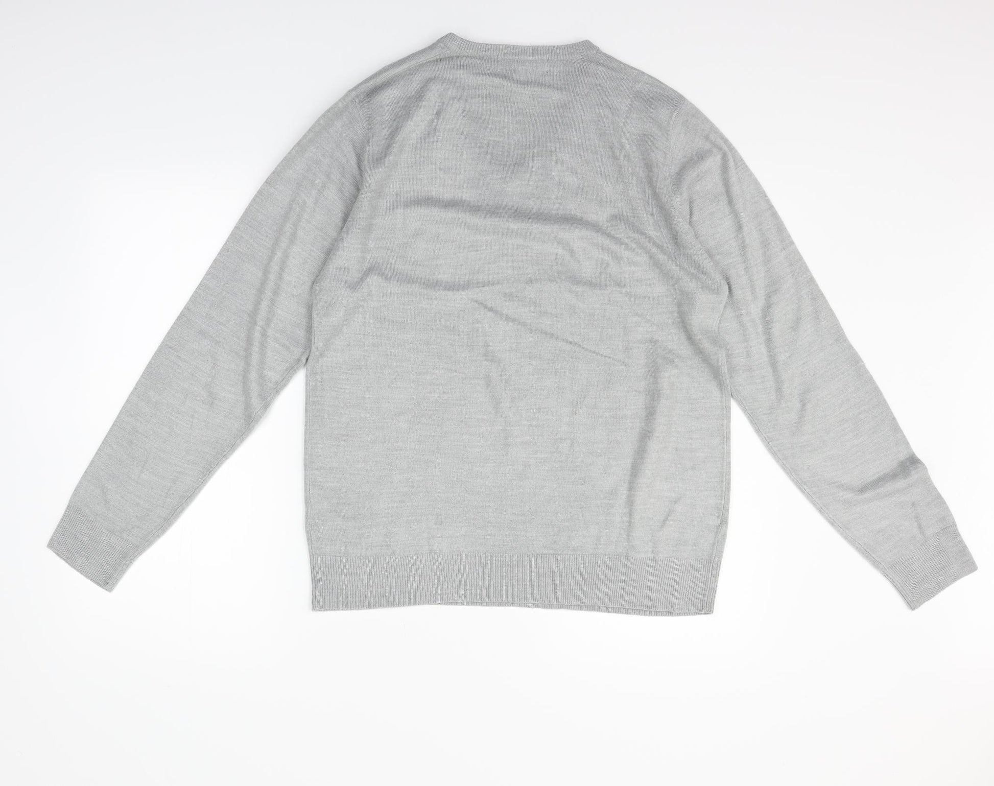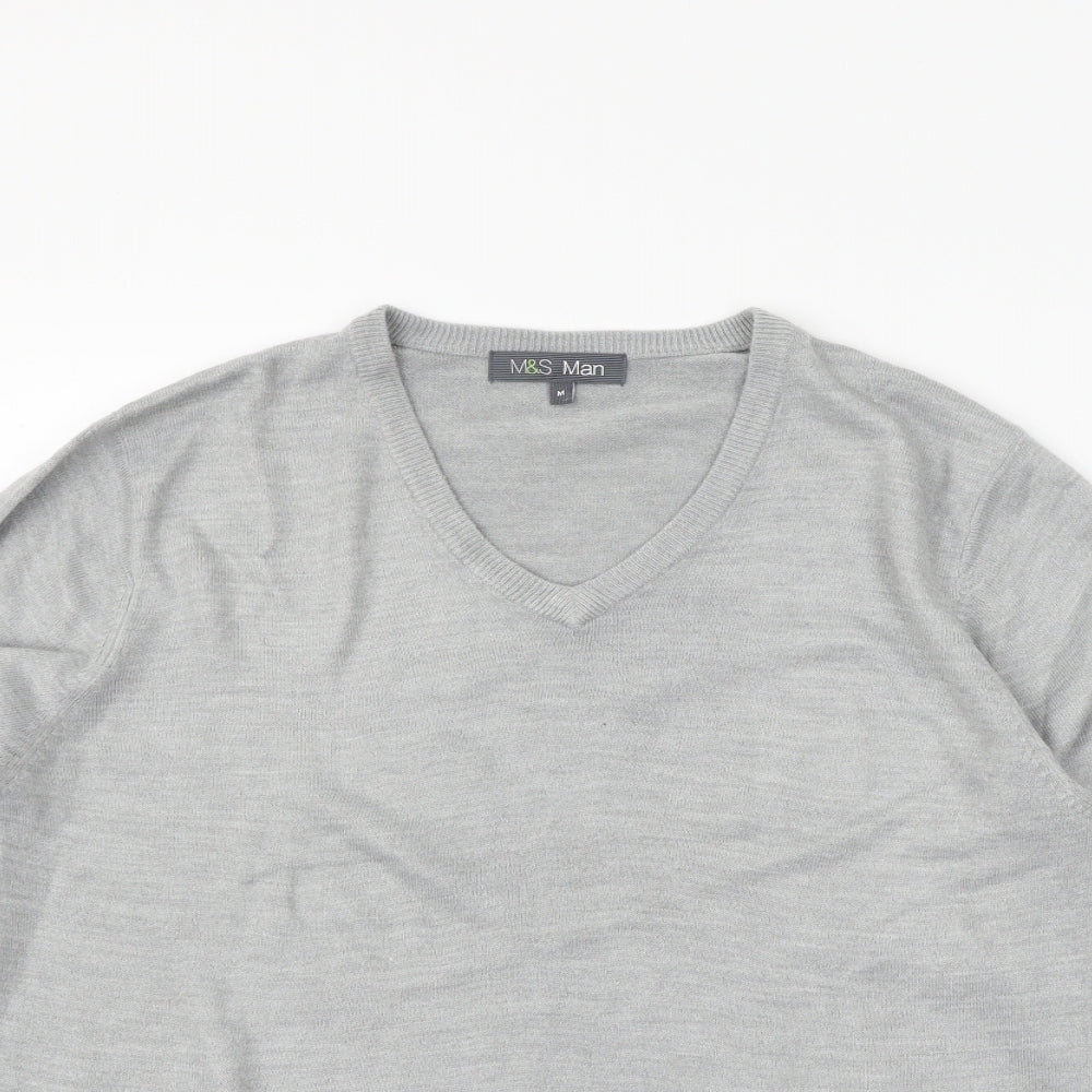 Marks and Spencer Men Grey Cotton V-Neck Pullover Jumper M