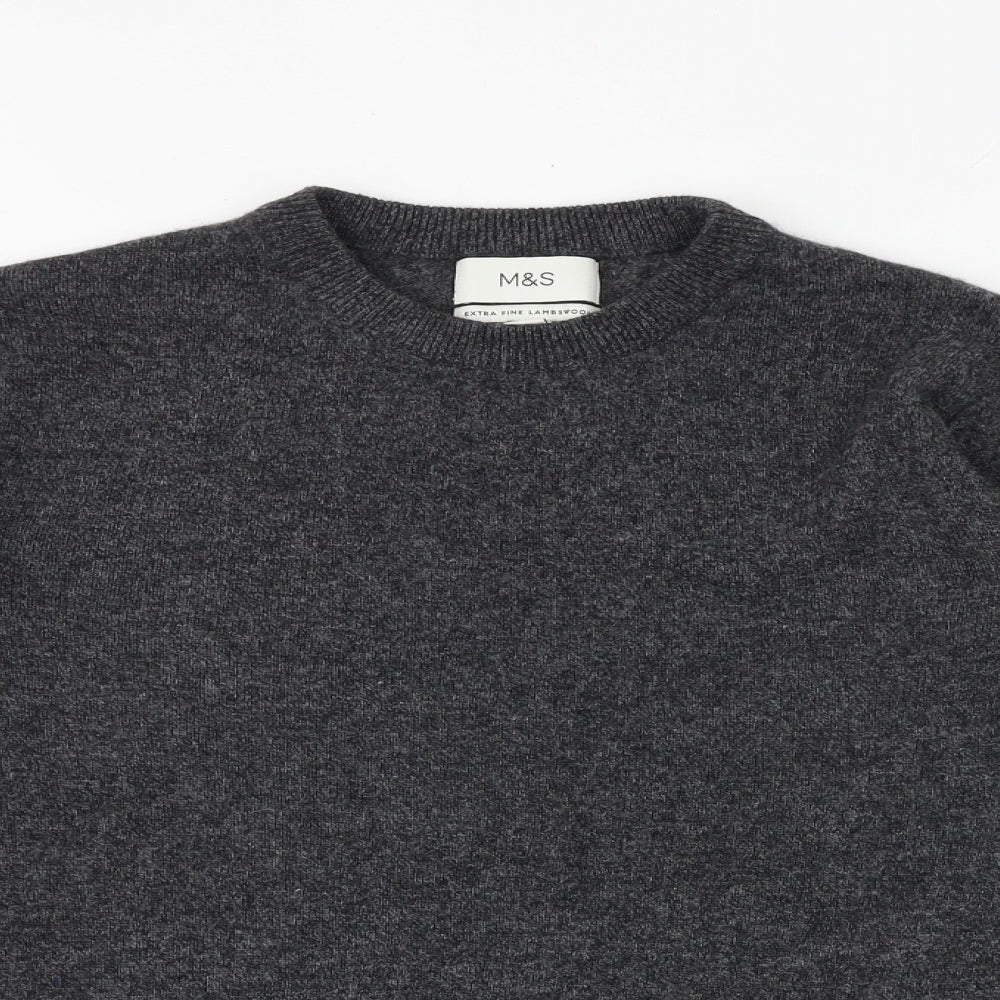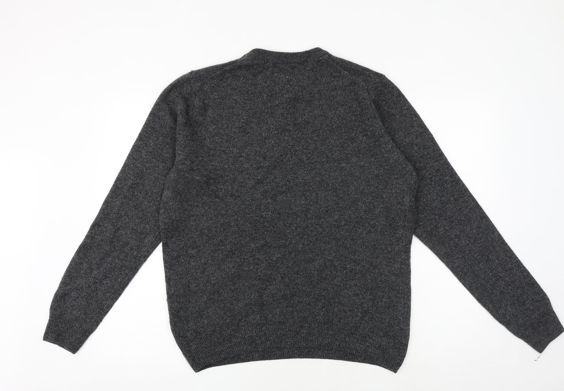 Mens Grey Round Neck Wool Pullover Jumper Size M Long Sleeve