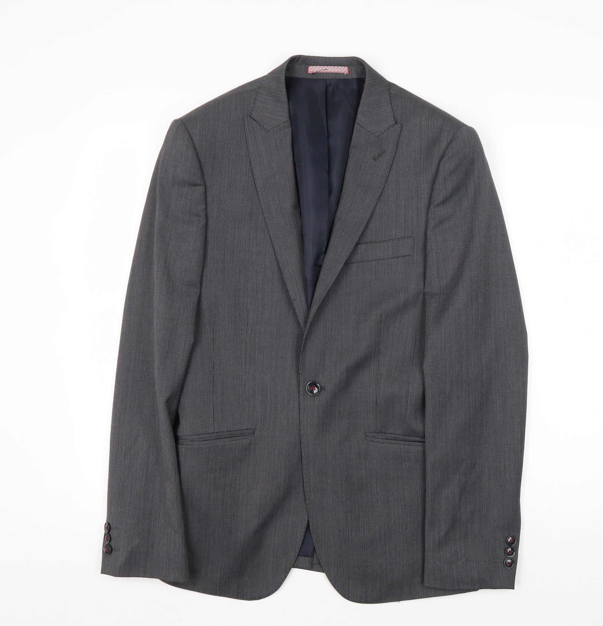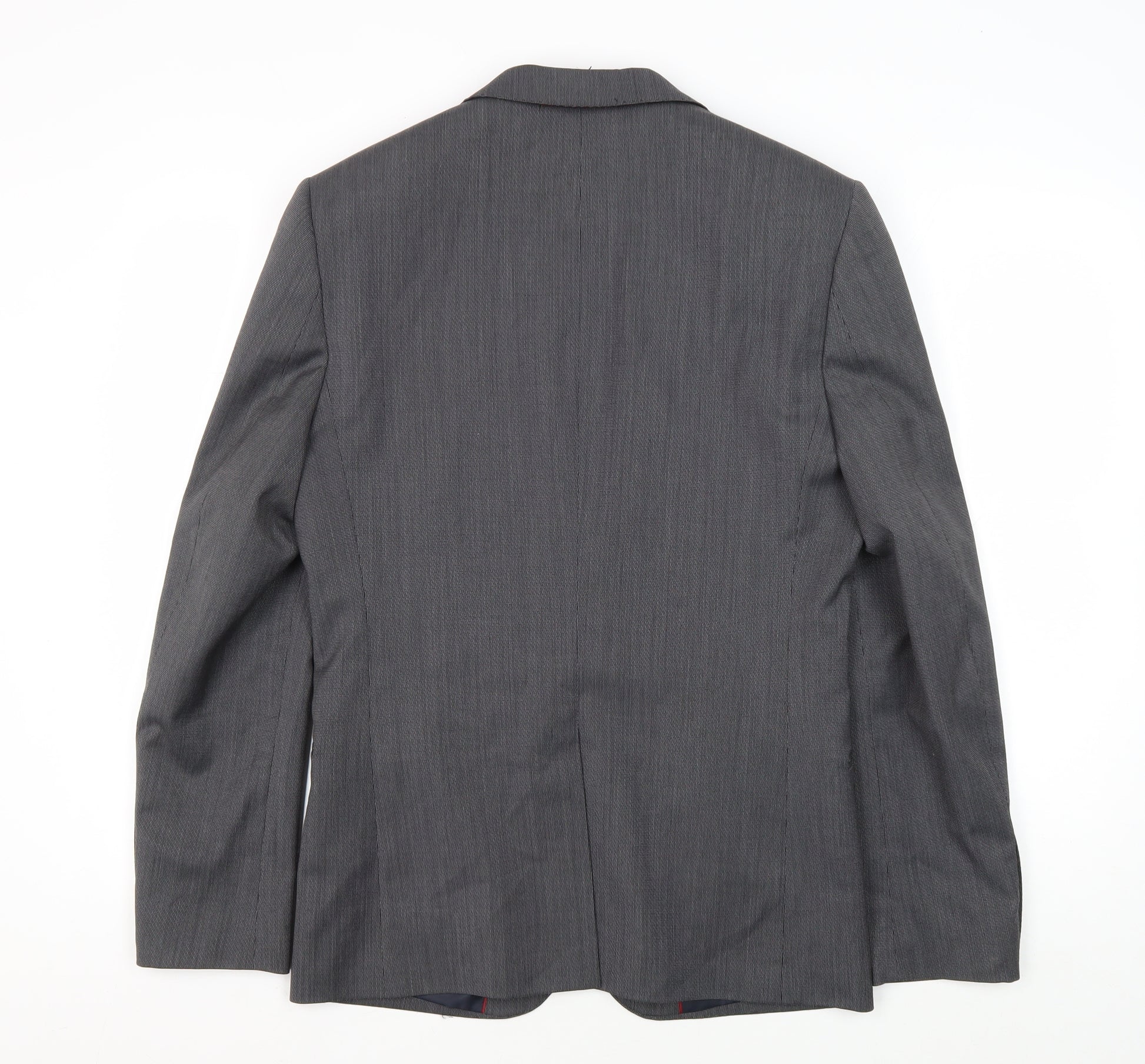 Elevate your formal wardrobe with this elegant grey suit jacket from Marks and Spencer. Crafted in a premium wool blend, this jacket is perfect for business or formal occasions, making it a versatile addition to any man's closet. The modern slim fit offers a chic silhouette, combining comfort with contemporary style, ensuring you always look your best. Featuring a classic notch lapel and a single-breasted cut with a two-button front, this jacket exudes timeless sophistication. The double-vented back provides ease of movement, while four-button cuffs add a refined touch. This jacket's clean, no-pattern design in a subtle grey colour makes it easy to pair with any shirt and tie combo, allowing it to fit seamlessly into your daily office rotation or special events. The lining is crafted from soft polyester for extra comfort and boasts inner pockets, offering practicality with an understated flair. Given its excellent condition, this jacket looks as good as new, ready to impress on your next important day. The practicality of care is also considered, with dry-cleaning recommended to maintain its pristine quality. Whether you're heading to the office or attending a formal gathering, this Marks and Spencer suit jacket is sure to keep you looking sharp throughout the autumn and spring seasons.