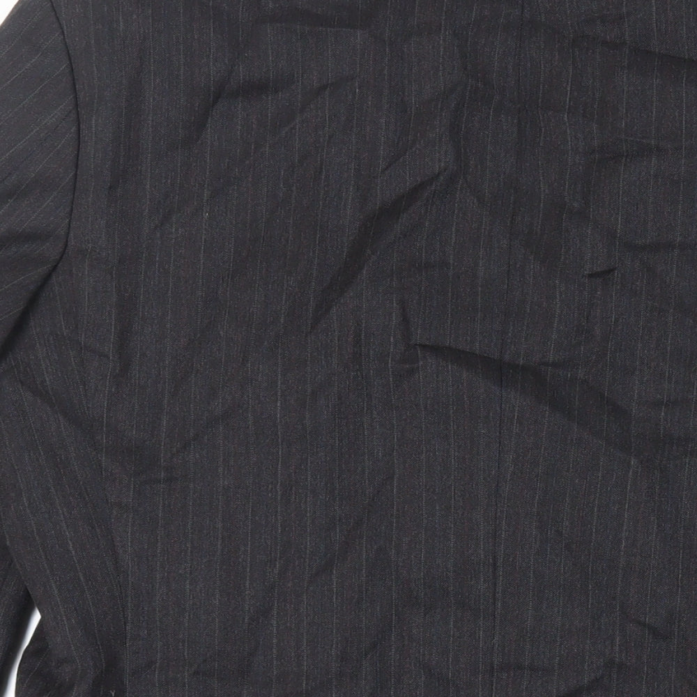 Mens Grey Striped Polyester Jacket Suit Jacket Size 38 Regular