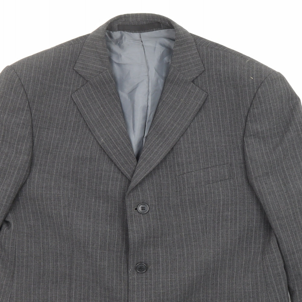 Mens Grey Striped Polyester Jacket Suit Jacket Size 40 Regular