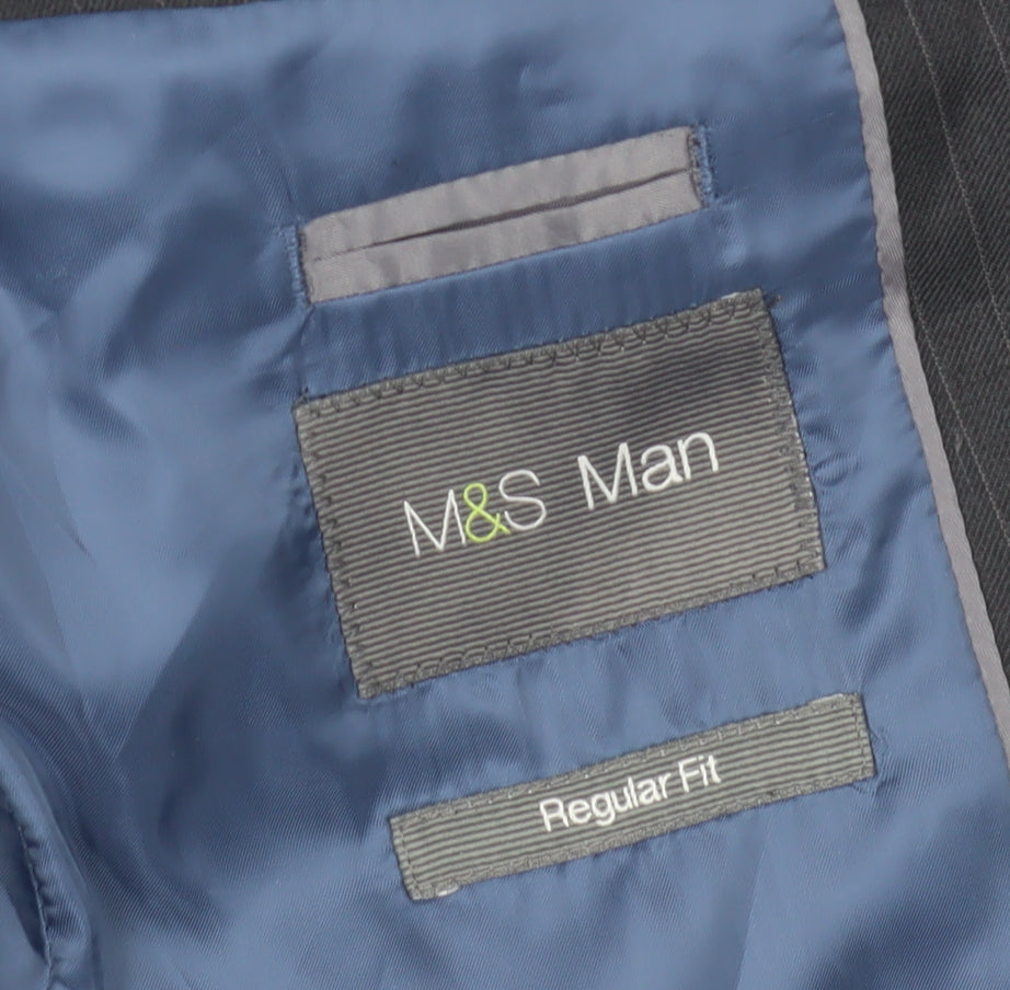 Elevate your formal wardrobe with this sophisticated Marks and Spencer Men's Grey Striped Wool Blazer. Crafted in a timeless design, this blazer boasts a classic notch lapel and a single-breasted, two-button front, ensuring you exude professionalism and style. The versatile grey colour with subtle stripes makes it perfect for business meetings and formal occasions alike. Made from 100% wool, this blazer promises both comfort and warmth, ideal for autumn and winter events. The regular fit ensures a flattering silhouette, while the double-vented back offers ease of movement. Inner pockets add practicality, keeping your essentials close at hand. This blazer is in excellent condition, showing minimal signs of wear, making it a fantastic addition to your wardrobe. Dry clean only to maintain its pristine quality. Whether you're gearing up for an office presentation or a formal gathering, this blazer is the ideal choice to make a lasting impression. Don't miss the chance to add this classic piece to your collection.