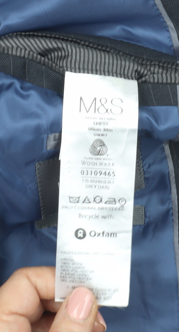 Men's Grey Striped Wool Blazer 34 Short Regular Fit