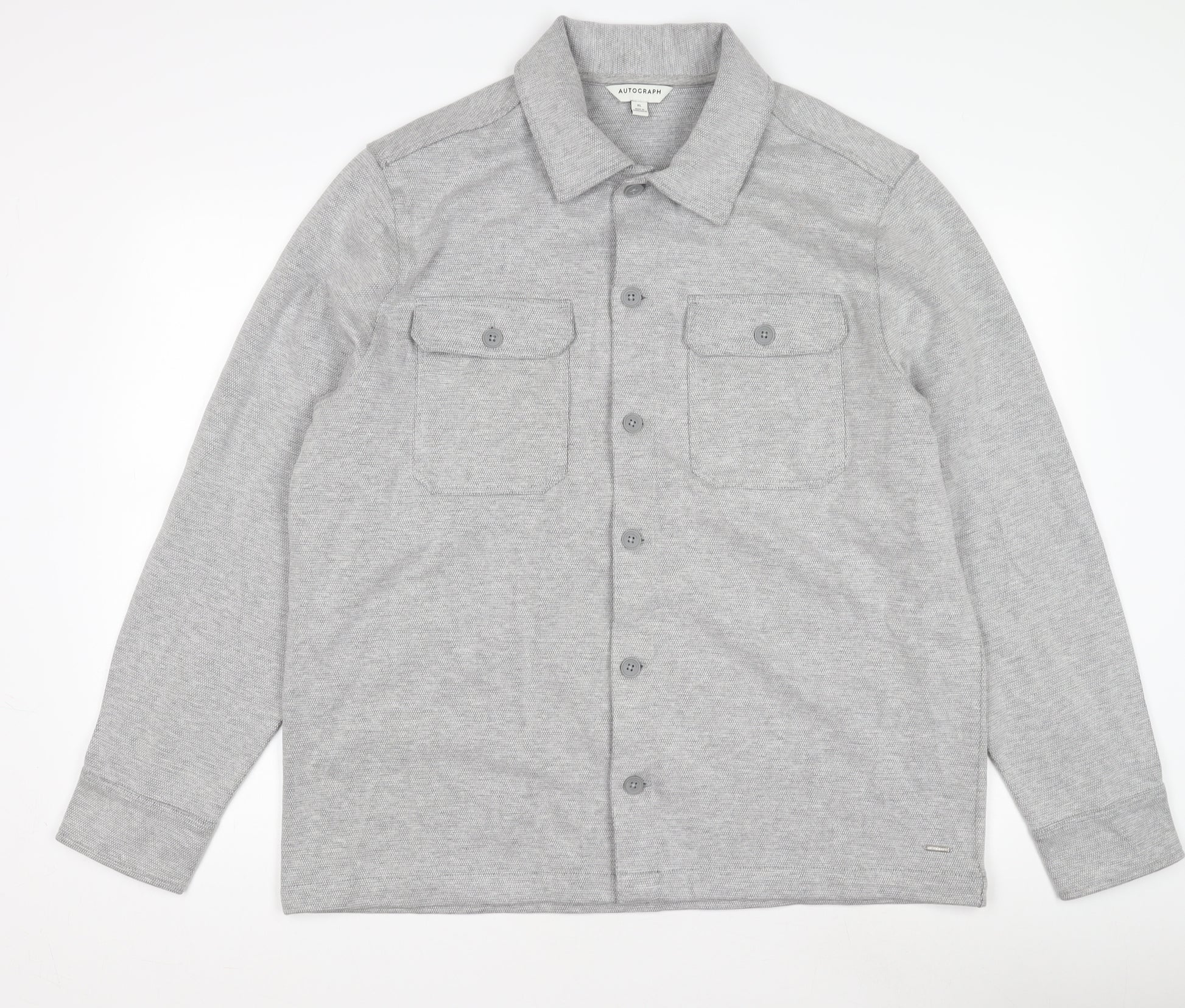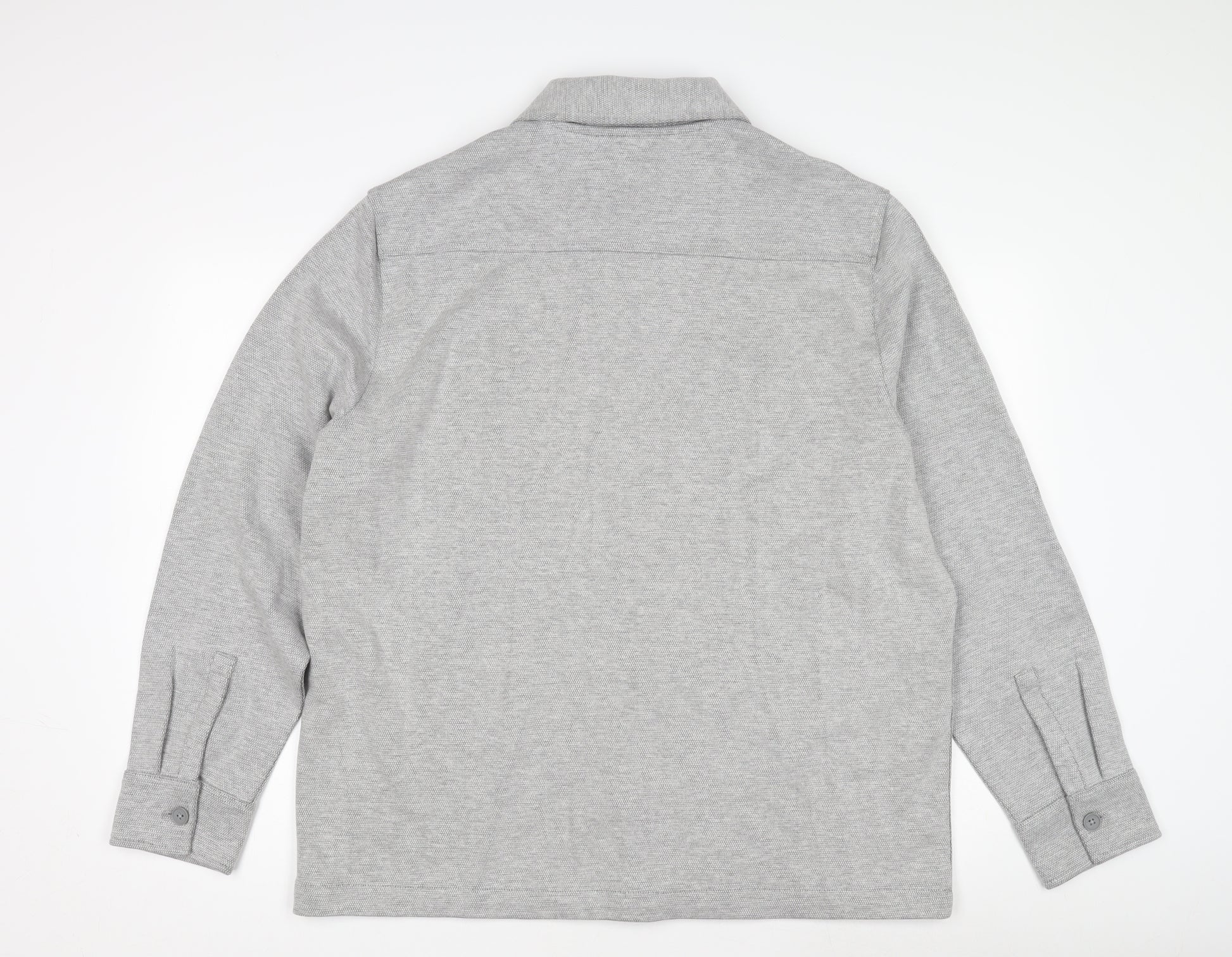 Elevate your casual wardrobe with this elegant Marks and Spencer Men's Grey XL Basic Knit Jacket. Crafted for comfort and style, this jacket features a classic collared design with a button-down closure, making it an ideal addition for the transitional seasons of autumn and spring. Made from a blend of cotton and polyester, its knit fabric provides a soft and comfortable fit, ensuring you stay stylish yet cosy throughout the day. The jacket's understated grey colour allows for effortless pairing with various outfit choices, adding versatility to your wardrobe. It boasts a mid-length cut, perfect for layering over your favourite shirts. The button accents enhance its casual appeal, while maintaining a sleek, modern look. Designed with the modern man in mind, this Marks and Spencer jacket is machine washable, making it as practical as it is stylish. It comes brand new with tags, reflecting its pristine condition, and is ready to be a staple in your clothing rotation. Whether you're dressing for a casual day out or a more relaxed office environment, this jacket makes a perfect choice. Priced competitively at £45.00, it's a great value for an essential piece from a renowned brand. Don’t miss the chance to enhance your collection with this timeless classic.