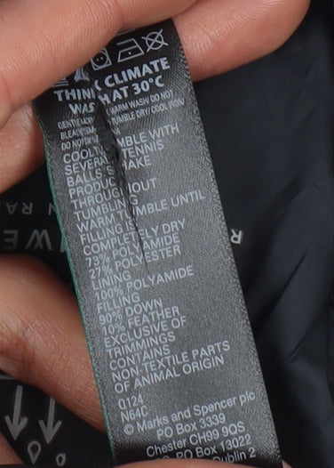 Stay warm and stylish with this Marks and Spencer men's waistcoat, designed for those chilly autumn and winter days. Constructed in a versatile grey colour, it's perfect for layering over casual outfits. The waistcoat is made from a durable blend of polyamide and polyester, ensuring longevity and comfort in various settings. Sized at XL and regular fit, it accommodates a chest size of 44 inches, making it ideal for those who appreciate ample space while moving. Featuring a stand-up collar and a convenient zip closure, this waistcoat embodies practicality with its thoughtful design. Insulated with Feather and Down, it offers warmth without unnecessary bulk, making it an ideal choice for outdoor walks or casual outings. Despite its light weight, the waistcoat promises resilience against cold and wind, thanks to its water-resistant properties. Easily packable, it can be taken along on trips or stored conveniently when not in use. Machine washable for simple garment care, this piece from Marks and Spencer is not only functional but also easy to maintain. With no visible defects and only slight wear, the condition is excellent, ensuring confidence in your purchase. This waistcoat is a wardrobe staple for those seeking comfort, warmth, and a touch of sophistication in the cooler months.