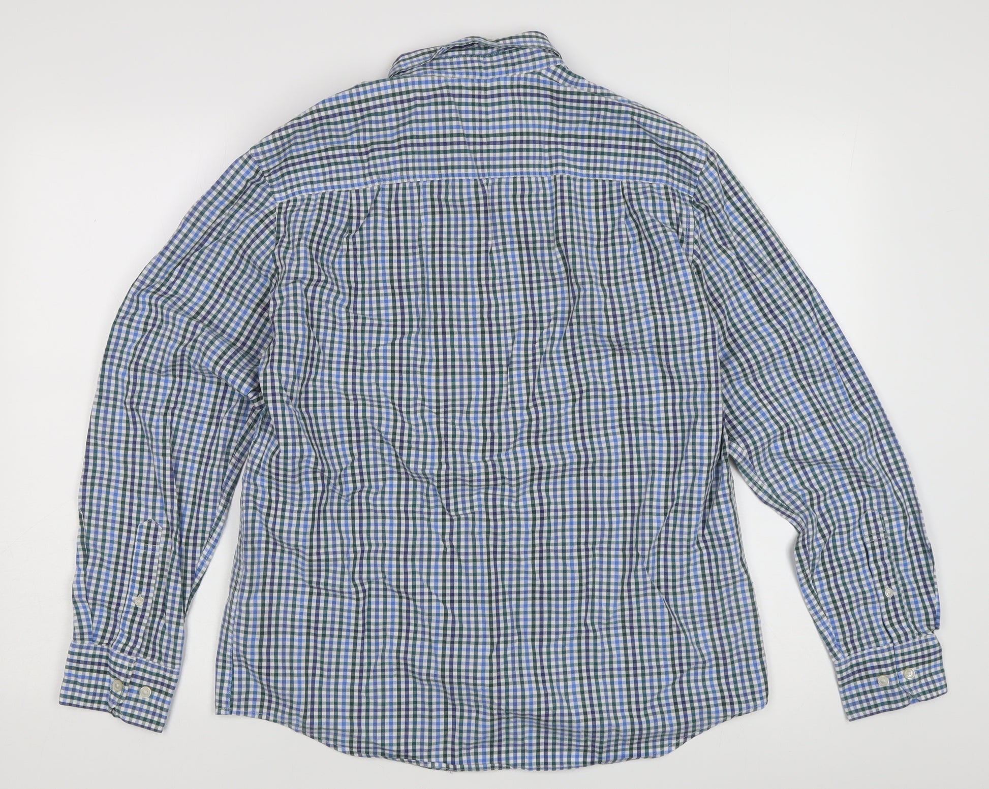 Elevate your casual wardrobe with this Marks and Spencer men's check shirt, designed for both style and comfort. Crafted from 100% cotton, this shirt offers a breathable yet durable fabric perfect for any season. The multi-colored check pattern brings a classic charm, making it a versatile piece that pairs effortlessly with jeans or chinos for a relaxed look or smart-casual wear. Featuring a regular fit that complements various body types, this button-up style ensures an easy and adjustable fit with a button-down collar for a polished appearance. The long sleeves can be rolled up or down according to your preference, offering adaptability with every wear. Excellent for casual occasions or weekend outings, this shirt is machine washable for easy care. Despite being in excellent condition with no original sales tags attached, it shows no visible defects, promising quality with each use. Perfect for the fashion-conscious man, this shirt is not only about appearance but promises comfort and longevity, ideal for everyday wear.