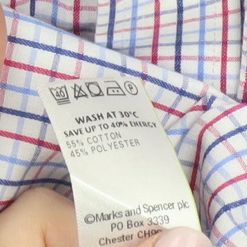 Upgrade your wardrobe with this versatile Marks and Spencer Men's Check Shirt. Crafted from a comfortable blend of 55% Cotton and 45% Polyester, this shirt is part of the well-regarded M&S Collection, known for its durability and easy-care properties. Featuring a regular fit and short sleeves, it's perfect for the warmer days of Spring and Summer. The attractive multicoloured check pattern adds a stylish touch to your casual attire, while the button-down collar maintains a polished look. With its machine washable convenience and easy iron feature, this shirt is designed to fit seamlessly into your everyday routine. Ideal for a casual outing or a relaxed workplace setting, this shirt embodies a blend of comfort and style. Don't miss the chance to add this garment to your collection.