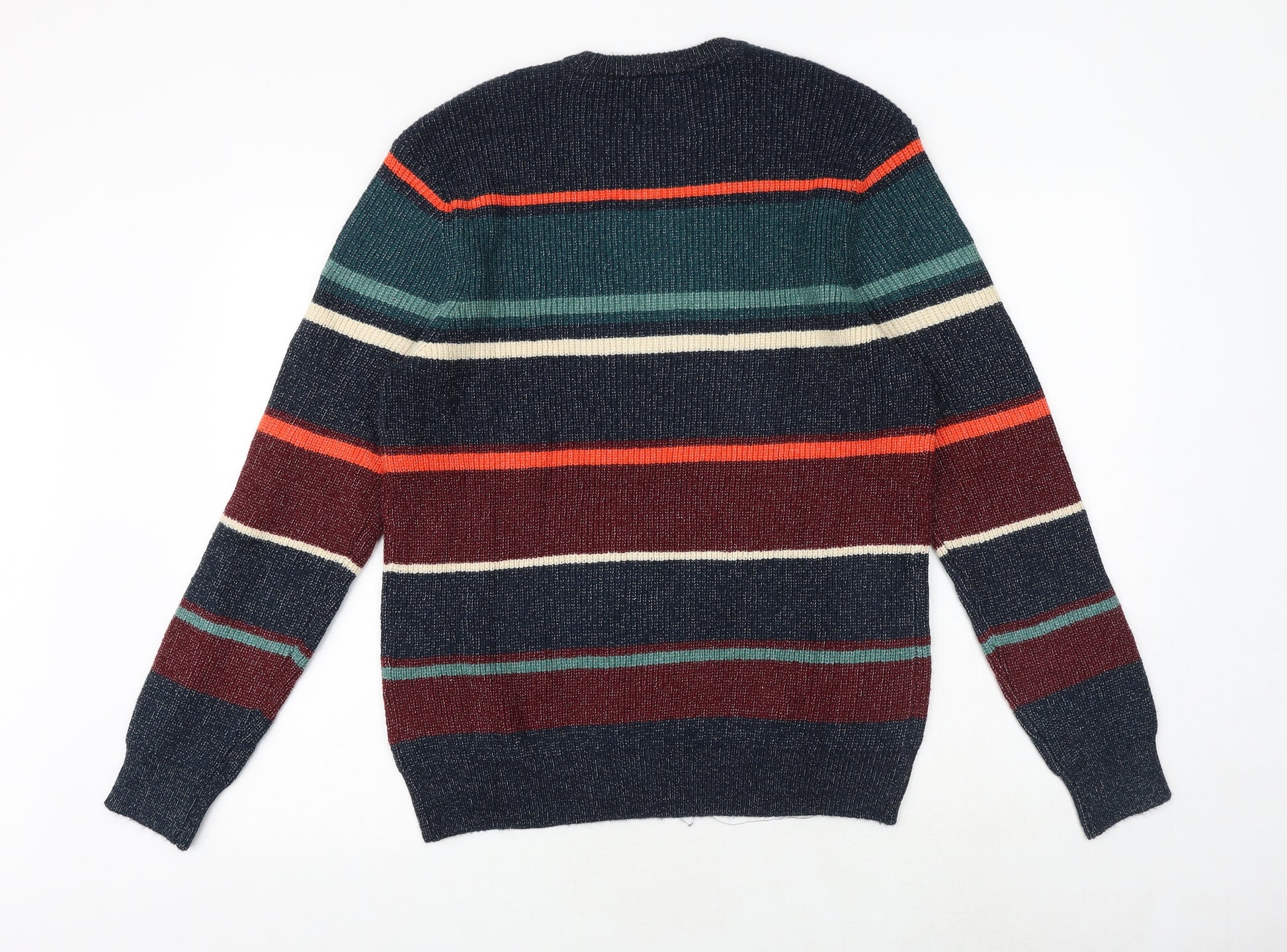Mens Multicoloured Round Neck Striped Acrylic Pullover Jumper Size M Long Sleeve