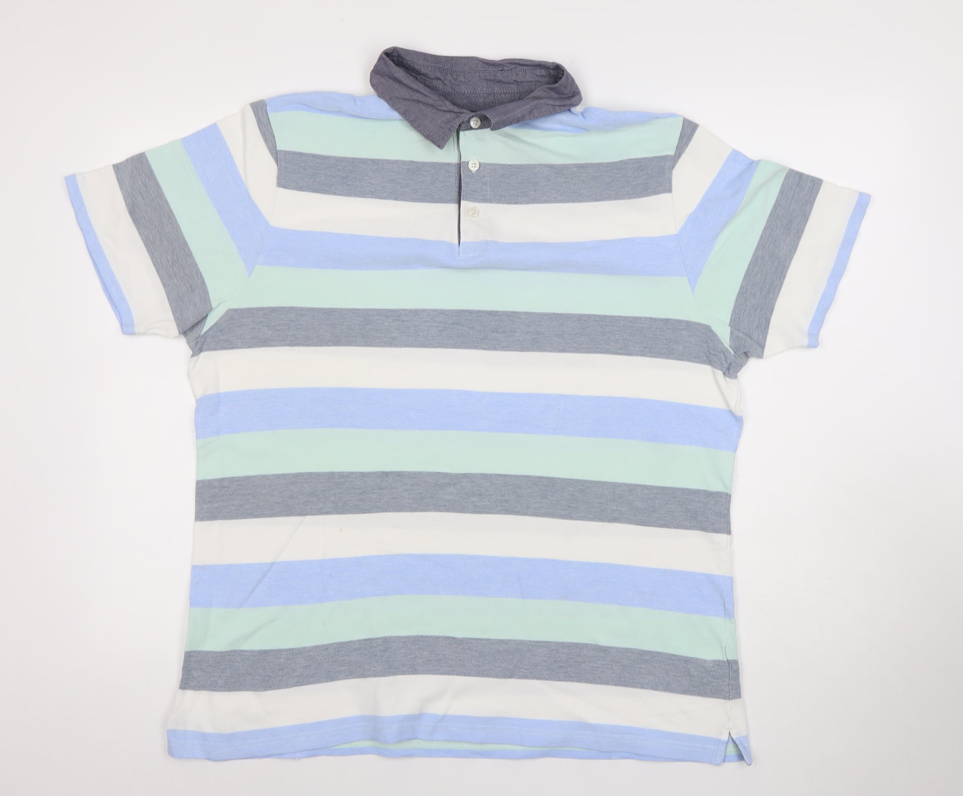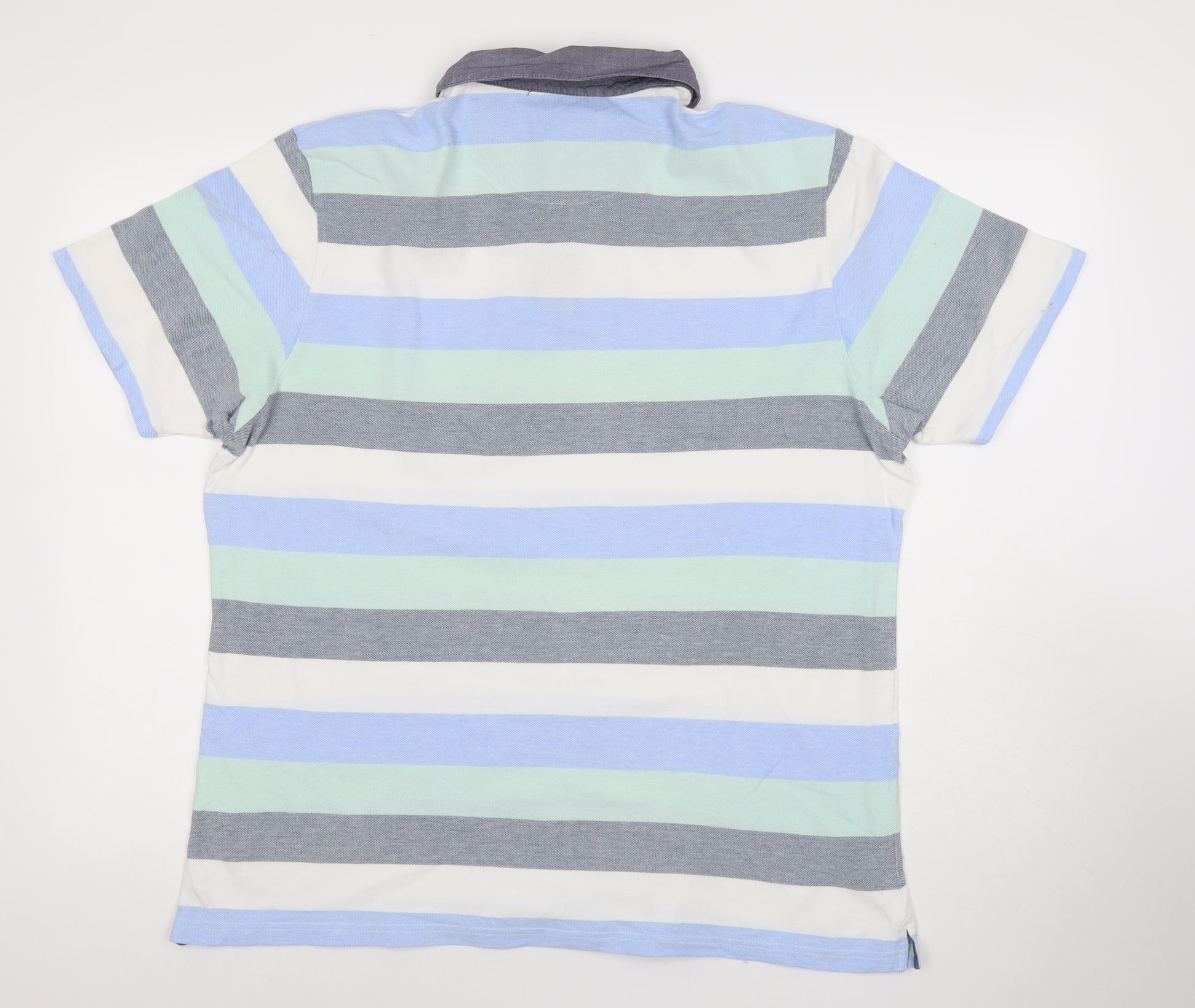 Marks and Spencer Men's Multicoloured Striped Cotton Polo Shirt L
