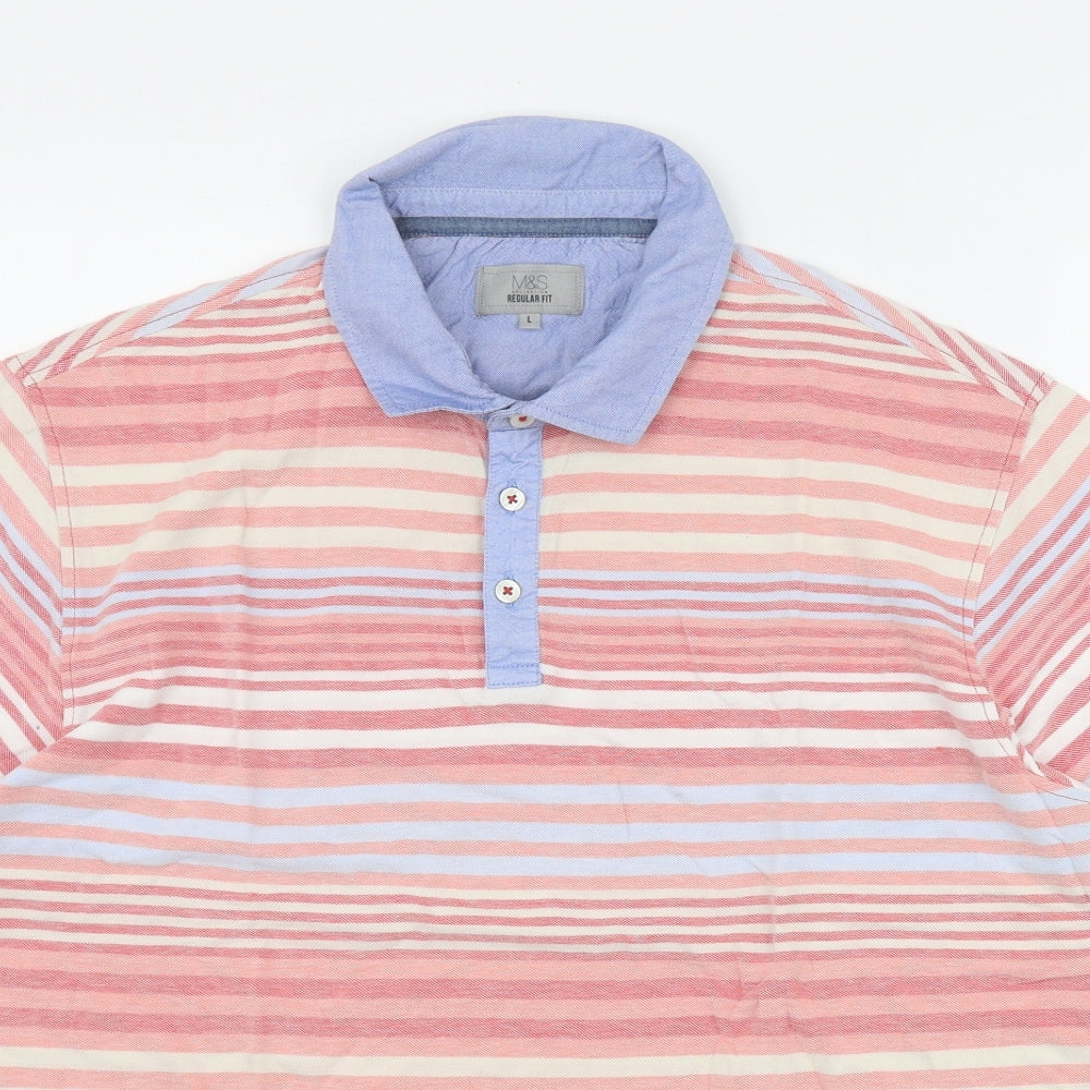 Mens Multicoloured Striped Cotton Polo Size L Collared Button