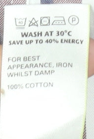 Elevate your formal wardrobe with this high-quality Marks and Spencer men's dress shirt. Tailored from 100% pure cotton, this long sleeve shirt ensures superior comfort and breathability, making it an excellent choice for both professional and special occasions. The multicoloured vertical stripe pattern in shades of mauve, white, and blue offers a timeless look that blends modern style with traditional sophistication. Featuring a classic button-down collar and a neatly aligned front button closure, this shirt provides an effortlessly polished appearance suitable for business meetings, weddings, or formal gatherings. The shirt is designed with barrel cuffs and a patch pocket, adding practical detail while maintaining a streamlined silhouette. With a UK Large sizing (chest 104–109 cm), it provides a regular fit that is both flattering and comfortable, perfect for day-long wear. The woven cotton fabric guarantees a natural softness while being machine washable for easy care, ensuring that maintaining its fresh, crisp finish is simple and convenient. The button-down collar style keeps the look structured, and the lightweight material enhances its versatility year-round. Marks and Spencer’s craftsmanship is evident in every seam, reflecting the brand’s long-standing reputation for quality menswear. Pair this shirt with tailored trousers for the office, or wear it smart-casual with chinos for an evening out. Whether for a professional wardrobe refresh or a refined addition to your collection, this shirt delivers exceptional value and enduring style. Conditioned in excellent pre-owned state with only minimal creasing from storage, it looks ready to wear. Designed for the modern gentleman who values both comfort and quality, this shirt makes a smart investment for any occasion where looking your best matters.