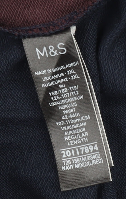 These Marks and Spencer men's jogger trousers in a stylish navy blue are perfect for casual outings and travel. Expertly crafted from a comfortable cotton and polyester jersey blend, they ensure a soft feel against the skin and offer durability for everyday wear. The regular fit is complemented by a sleek tapered leg style, providing a modern look while ensuring comfort. The trousers feature an elastic waist with a drawstring for adjustable comfort, and handy slash pockets for practicality. With their mid-rise fit, these joggers sit comfortably at the waist, making them a versatile addition to your wardrobe. Suitable for all seasons, they pair well with both casual tees and smart tops. Perfect for the man on the go, these joggers promise comfort without compromising on style. Machine washable and easy-care, they are a practical choice for the busy modern man. Invest in quality with these versatile joggers from Marks and Spencer.