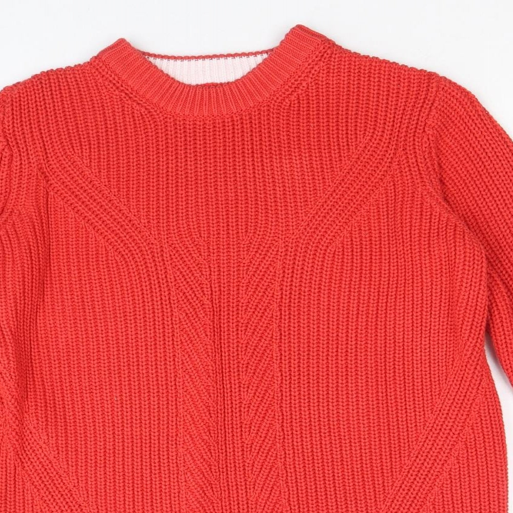 Mens Red Round Neck Cotton Pullover Jumper Size S Long Sleeve