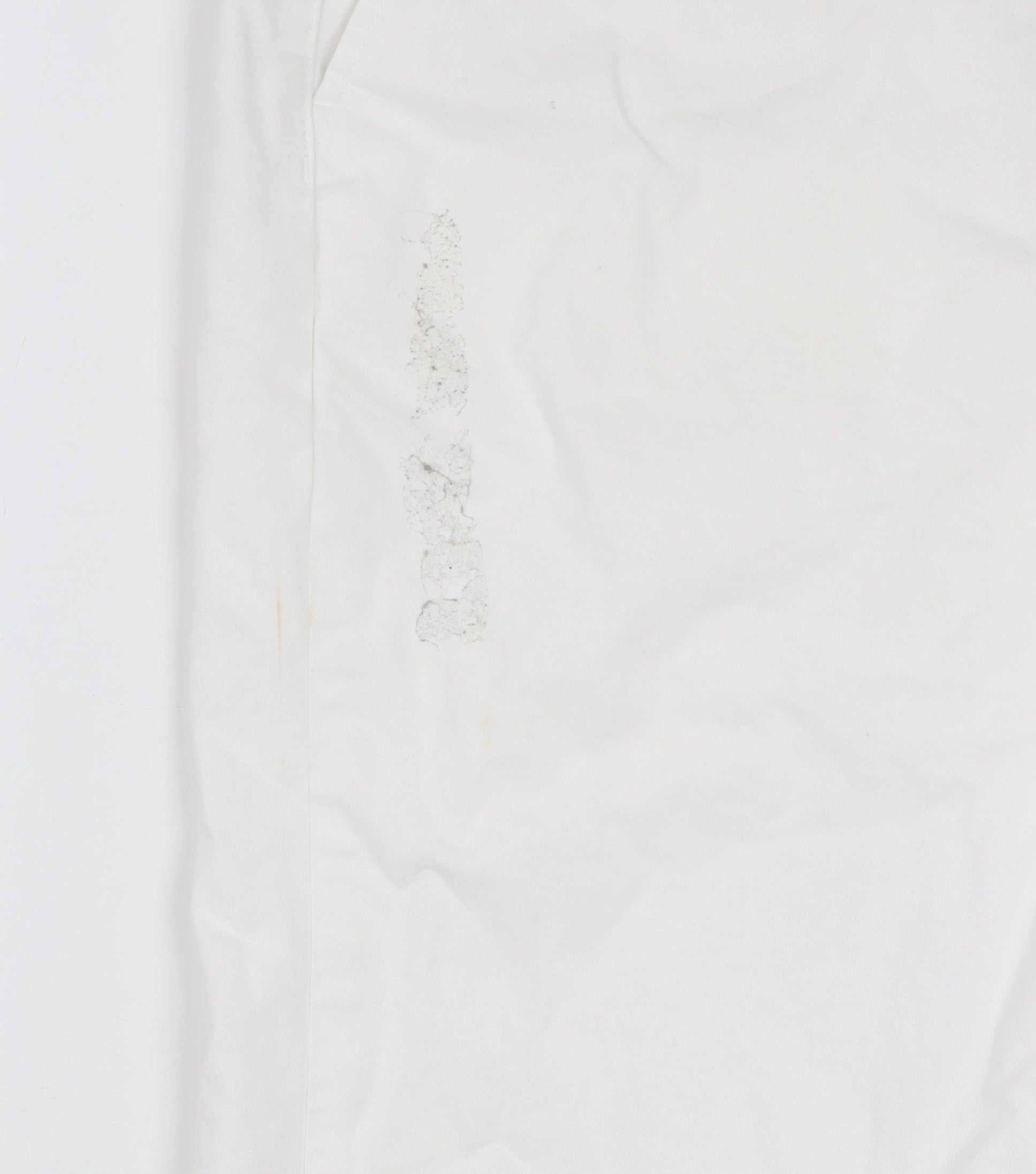 Step into warm-weather style with these crisp white Marks and Spencer men’s chino trousers, designed for everyday comfort and effortless class. Crafted from 100% pure cotton, these chinos offer a smooth, breathable feel ideal for spring and summer wear. The regular fit allows ease of movement while maintaining a sharp silhouette, perfect for styling with polo shirts or linen shirts for relaxed weekends or casual outings. The classic straight leg cut and flat front design give a timeless appeal that is both modern and understated. Featuring practical details such as sturdy belt loops, side slash pockets, and buttoned back pockets for secure storage, these trousers ensure convenience alongside style. A zip and button fastening complete the front closure, providing a secure yet comfortable fit around the waist. The neutral white tone gives them versatile appeal, effortlessly complementing a range of colours and footwear choices. While the trousers show a subtle mark on the left leg, they remain in good wearable condition overall, perfect for those looking for affordable, high-quality wardrobe staples. Ideal for casual social events, daily outings, or holiday packing, these chinos balance sophistication with laid-back style. Easy to care for and machine washable, they’ll quickly become a go-to item in your collection, offering durability and breathable comfort. Whether paired with loafers and a crisp shirt for a polished day look, or trainers and a tee for a more relaxed weekend vibe, these Marks and Spencer chinos are a versatile addition to any man’s wardrobe. Priced affordably based on condition, they offer excellent value from a trusted brand known for timeless menswear essentials. Refresh your smart-casual selection today with these reliable and stylish white cotton chinos for effortless sophistication.