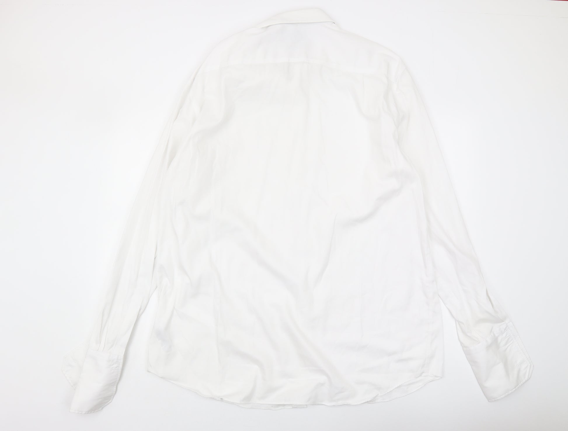 Elevate your formal wardrobe with this classic white shirt from Marks and Spencer. Crafted from 100% cotton, this shirt promises comfort and breathability for all-day wear. Its regular fit, combined with long sleeves and a collared neckline, offers a timeless and professional look suitable for business settings. The solid white colour adds a touch of elegance, making it versatile for pairing with any trousers or suits. Designed for the modern man, this shirt features a non-iron finish, saving you time and effort on busy mornings. The button-up closure makes it easy to wear, while its regular size type ensures a flattering fit for chest sizes up to 44 inches. Whether it's for the office or a formal occasion, this shirt is a reliable choice. Enjoy the comfort and style you expect from Marks and Spencer, with the added convenience of machine washability. Update your wardrobe with this essential piece that offers both style and practicality, ensuring you look sharp and feel confident at every event.