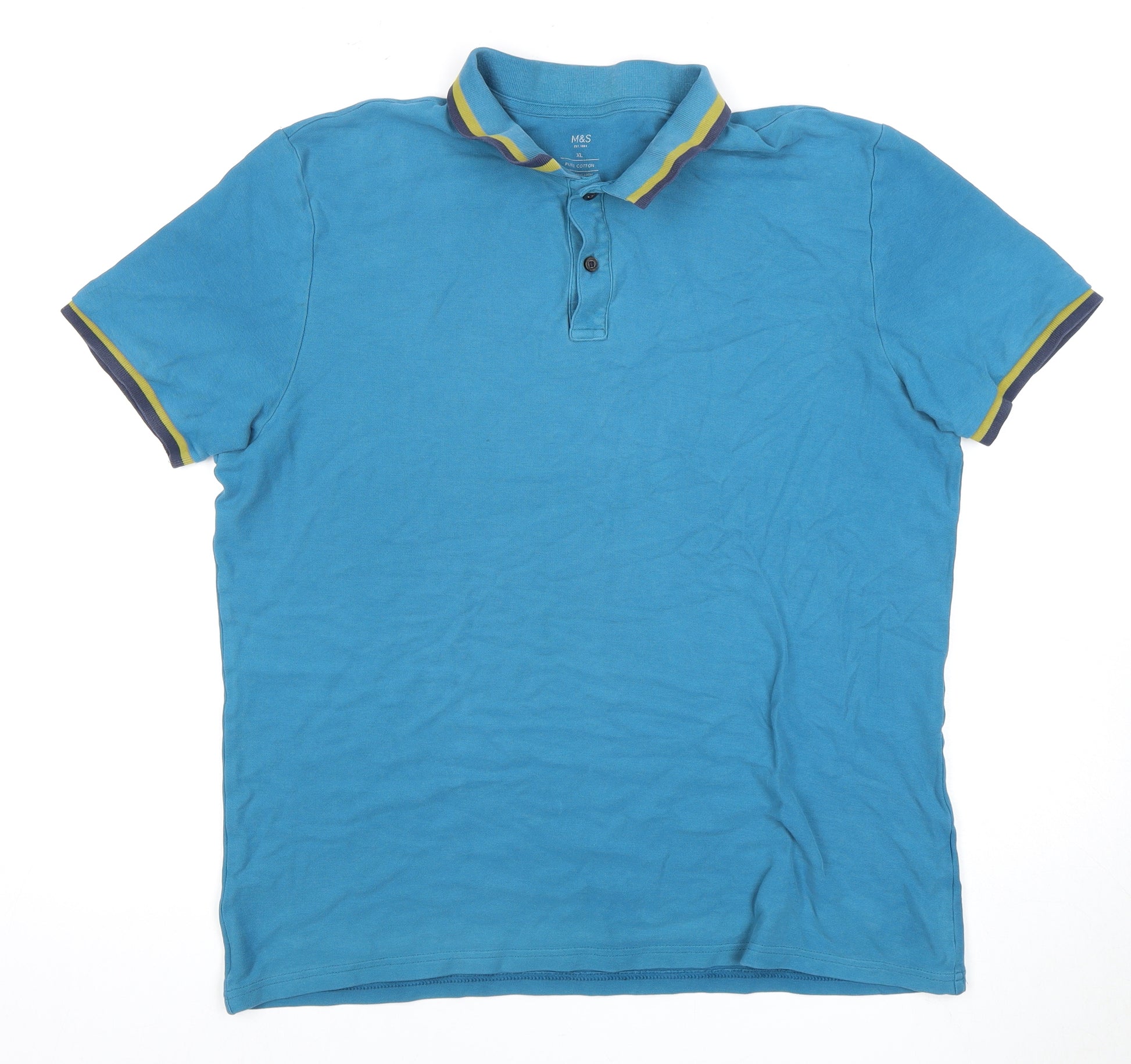 Marks and Spencer Blue Harbour Men's Blue XL Cotton Polo Shirt