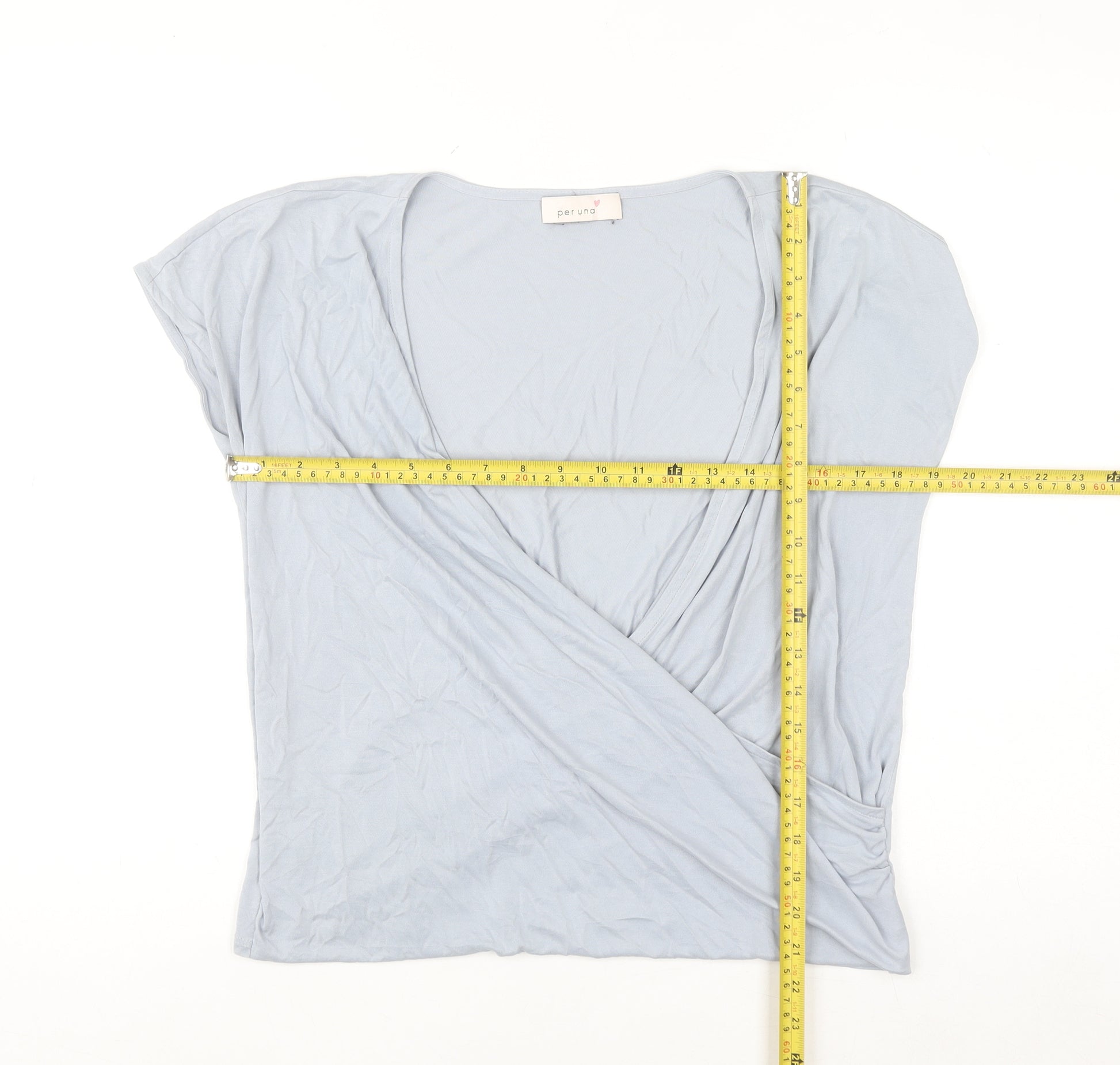Per Una Women's Blue Wrap Jersey Blouse Size 12