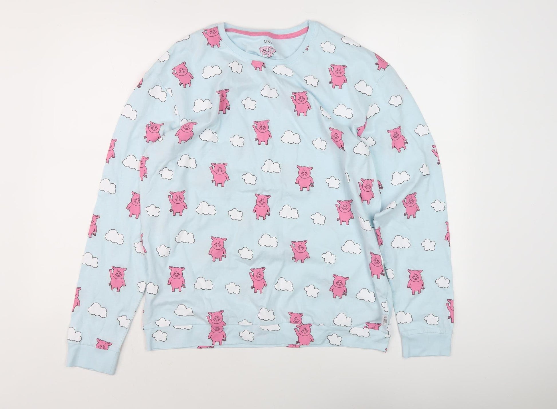 Introducing the charming and cosy Percy Pig pyjama top from Marks and Spencer, designed to add a playful touch to your nightwear collection. Crafted from soft, 100% cotton jersey fabric, this pyjama top offers ultimate comfort for a restful night's sleep. Featuring a delightful graphic print of Percy Pig, this top is adorned with a fun and colourful animal theme that brings a cheerful vibe. Perfect for teens, the size 14-16 ensures a comfortable fit for juniors. The long sleeves and crew neckline enhance the cosy feel, making it suitable for Spring and Summer nights. Easy to care for, this machine washable top is both practical and stylish. Ideal for those who enjoy expressing their personality, this Percy Pig pyjama top is a great addition to any sleepwear wardrobe. Grab yours today and indulge in comfort and style with Marks and Spencer.