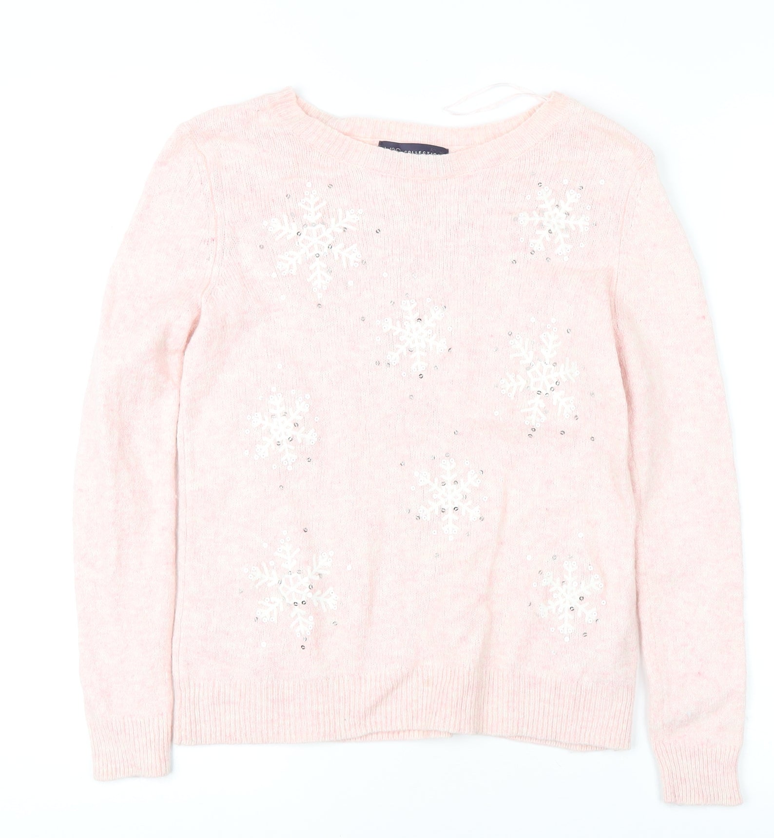 Stay warm and stylish with this beautiful pink pullover jumper from Marks and Spencer, designed to keep you cosy and comfortable all winter long. Crafted from a soft blend of viscose, polyamide, merino wool, and acrylic, this knit jumper offers easy, machine washable care making it perfect for everyday wear. Featuring a classic crew neck design, long sleeves, and elegant embroidered sequins that add a touch of sparkle, this jumper provides the perfect blend of comfort and style. Ideal for casual occasions, it's a versatile piece that pairs effortlessly with both jeans and skirts. Whether you're out shopping or relaxing at home, this jumper ensures you step out in style. The fitted, regular style ensures it complements various body types, offering a flattering fit. This feminine, winter must-have is a great addition to any women's wardrobe, bringing together warmth, luxury, and elegant aesthetics in one great package.
