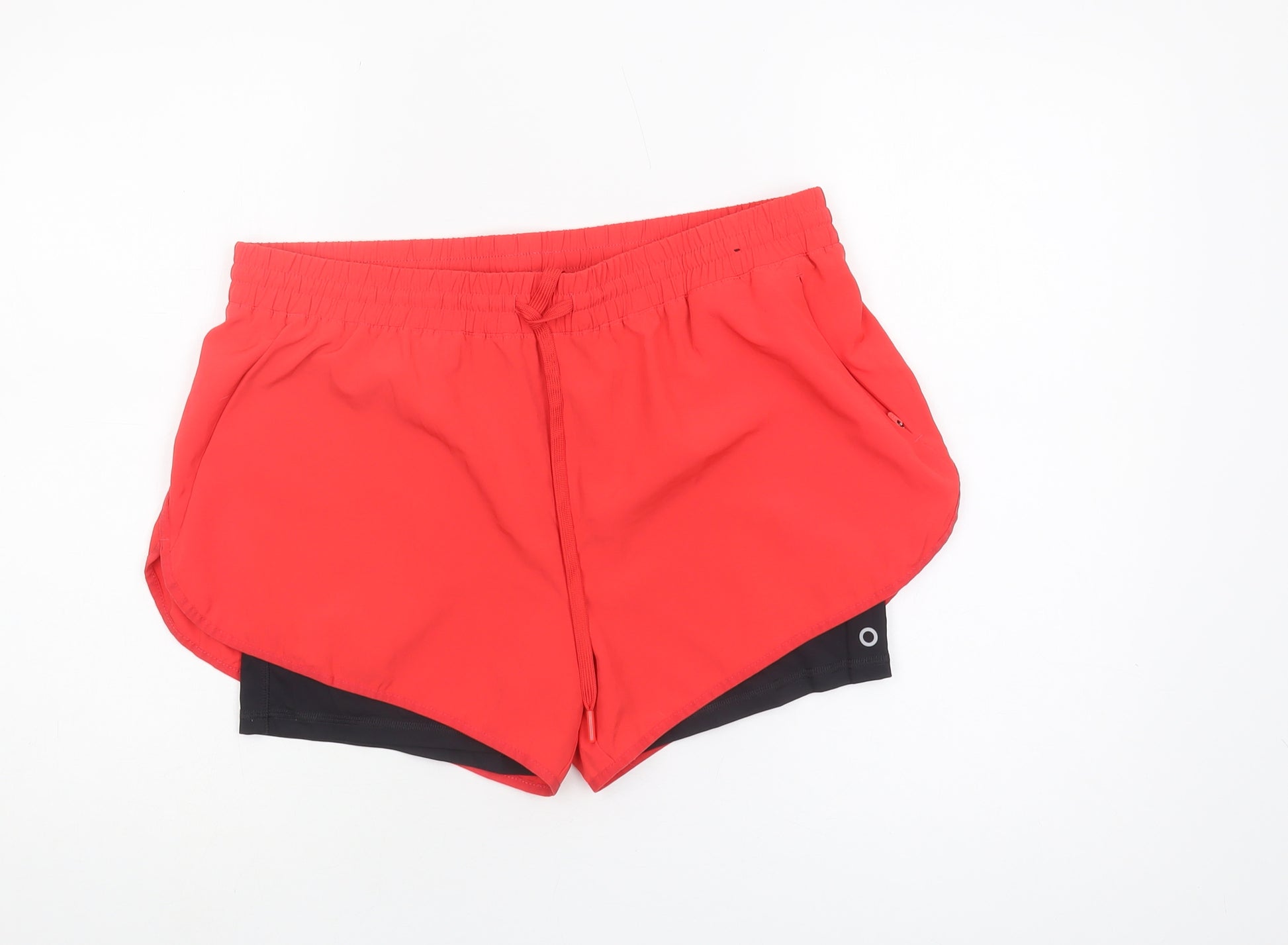 Elevate your athletic wardrobe with these stylish Marks and Spencer women's athletic shorts, available in a striking red shade. Perfect for running, jogging, and gym training, these shorts promise comfort without compromising on style. Designed in size 14, they feature a regular fit with a convenient elastic waist and drawstring closure to ensure a snug and adjustable fit. The high-quality fabric, made from polyester, elastane, and polyamide, ensures durability and flexibility, making these shorts ideal for high-intensity activities. Enjoy the quick-dry feature that lets you stay cool and comfortable during the warmer months. Easy to maintain, these shorts are machine washable, making them suitable for everyday use. Whether you're hitting the track or lifting weights, these versatile athletic shorts are your perfect companion. Gently used and in excellent condition, they show no visible signs of wear, ensuring you look your best. Don't miss out on adding this essential piece to your activewear collection!