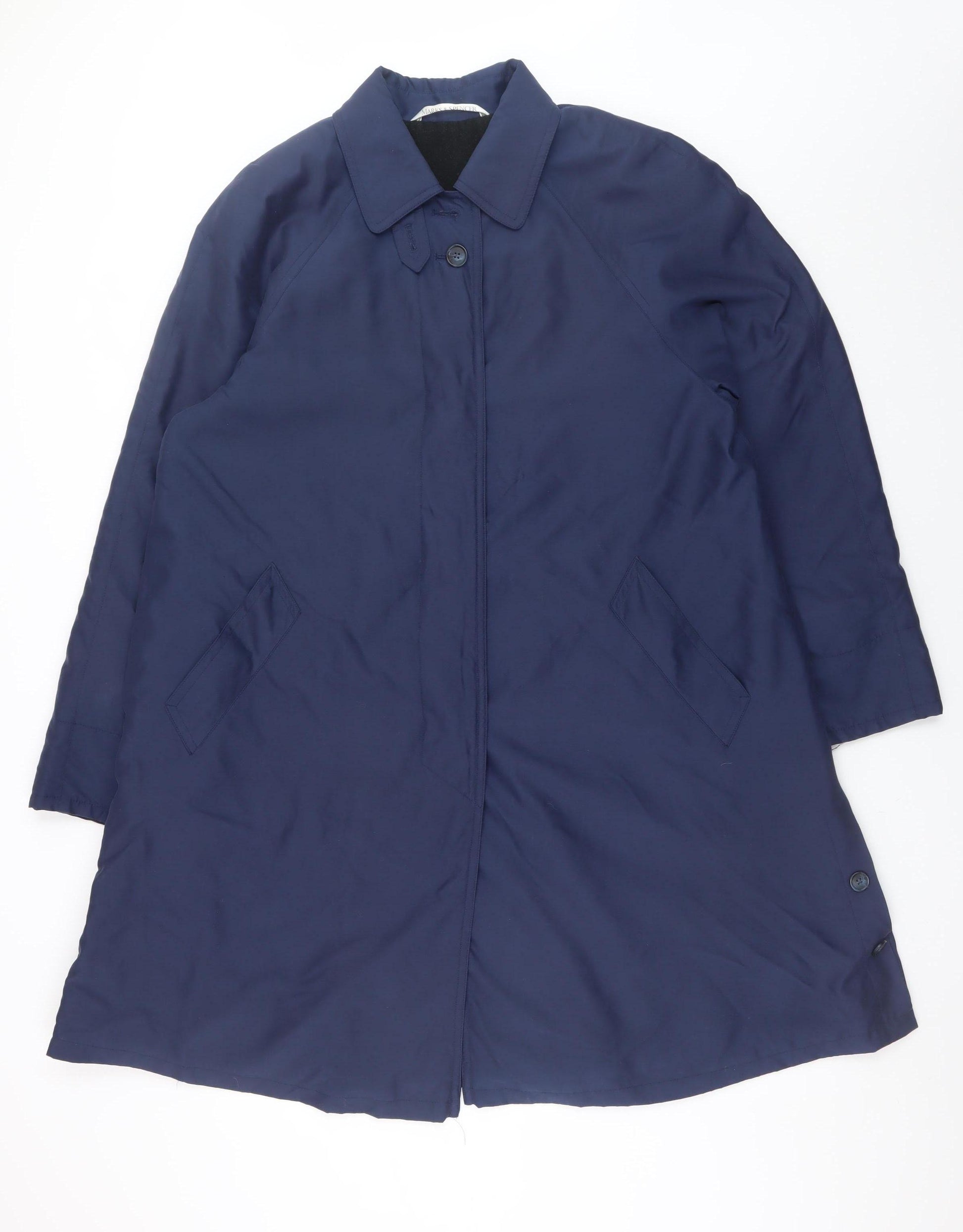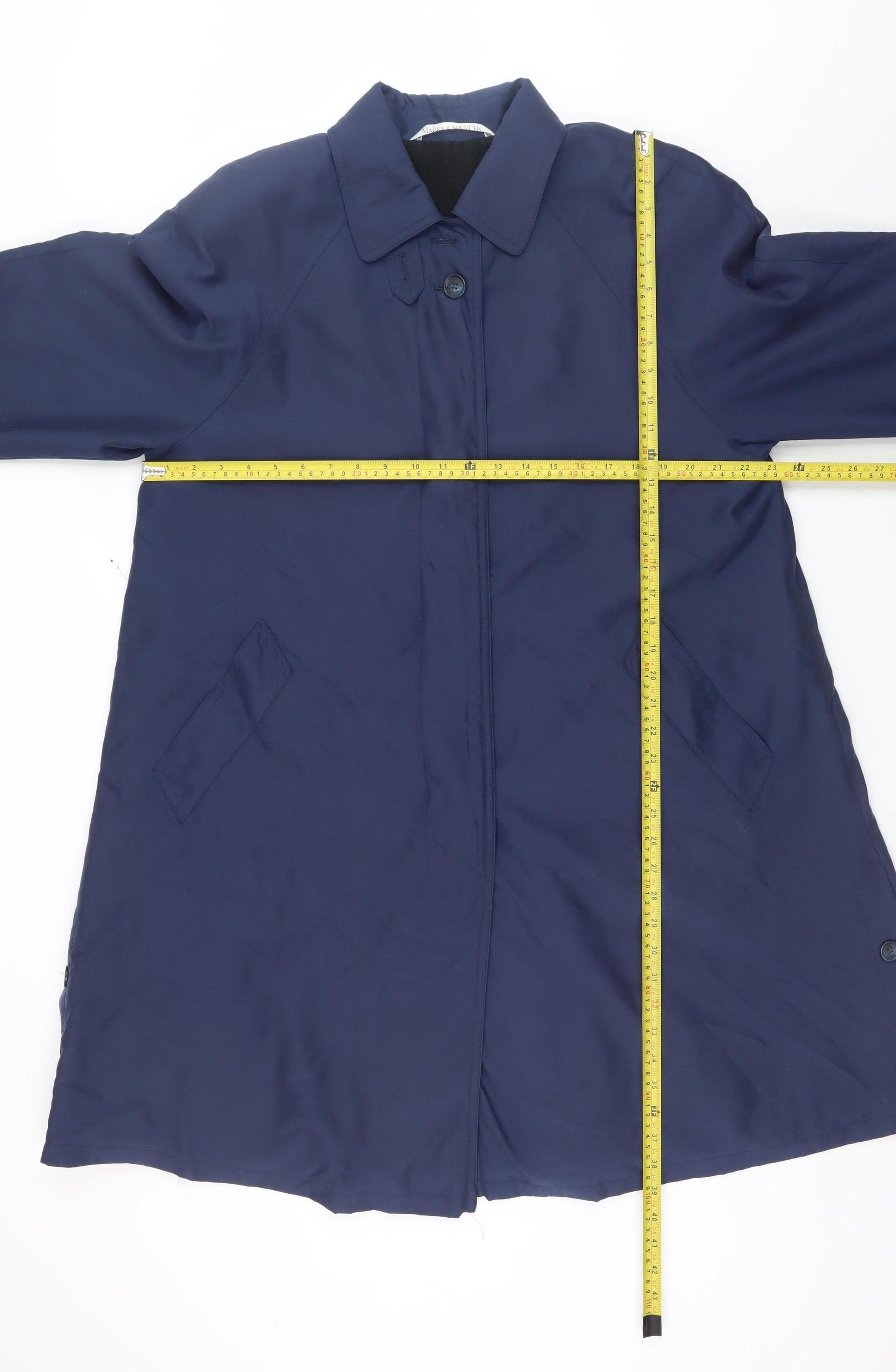 St Michael Women's Blue Long Overcoat Size 12 Classic Style