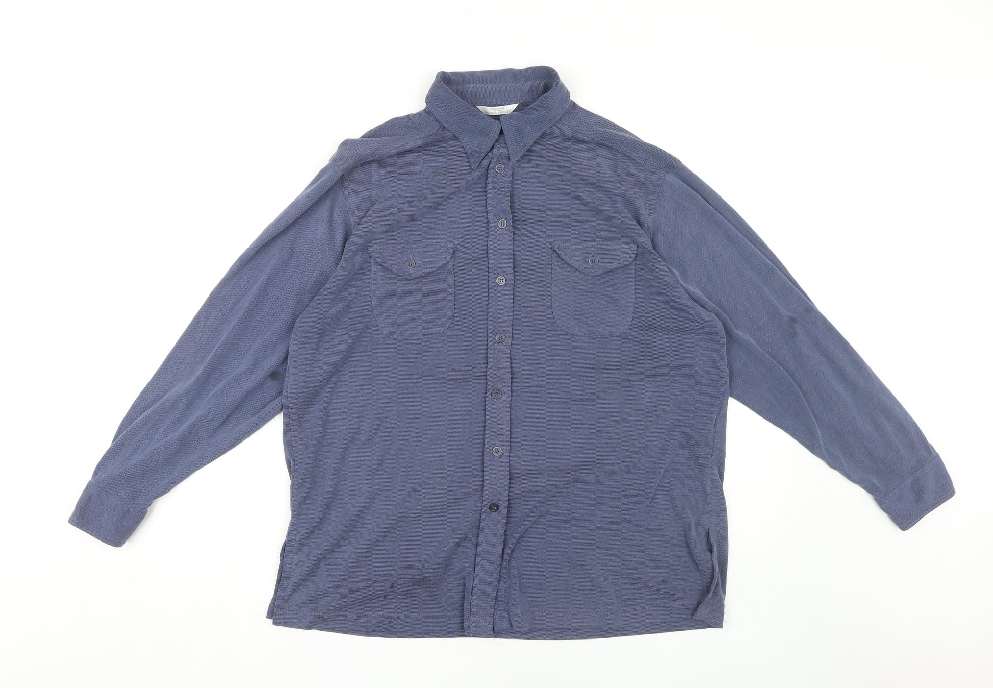 Elevate your casual wardrobe with this Marks and Spencer Unisex Blue Button-Up Shirt, designed for both style and comfort. Crafted from a soft blend of modal and polyester, this shirt ensures a smooth and lightweight feel, perfect for all-day wear. The deep blue hue brings a touch of elegance to your look, while the classic button-up design complements any ensemble effortlessly. Featuring long sleeves and a collared neckline, this shirt is versatile and suitable for various occasions, whether you're heading out for a laid-back brunch or a casual work meeting. Designed in a regular size type, it offers a comfortable fit for everyday use. With a chest size of 36 inches, it caters to a modern, relaxed fit. Ideal for all seasons, this blue button-up shirt is machine washable, offering convenience and ease of care for busy lifestyles. Although the shirt is in very good condition, please note there is slight discoloration on the back, adding a unique charm to the piece. Whether you're pairing it with jeans for a casual outing or layering it under a jacket for added warmth, this shirt from Marks and Spencer offers endless possibilities. Add a timeless staple to your collection with this versatile piece and enjoy the understated style it brings to your wardrobe.