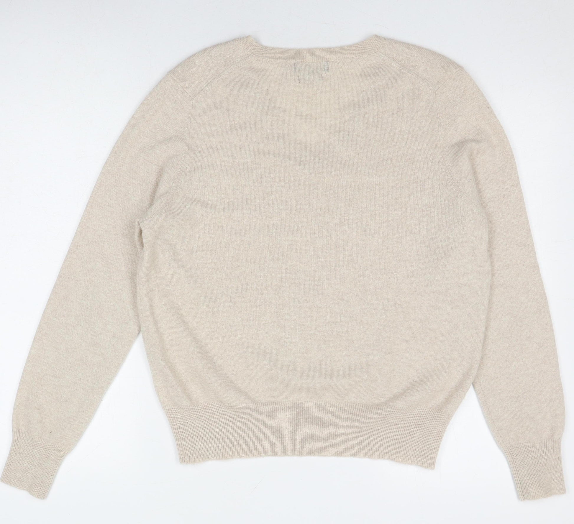 Women Beige Cashmere V-Neck Jumper - Size 14
