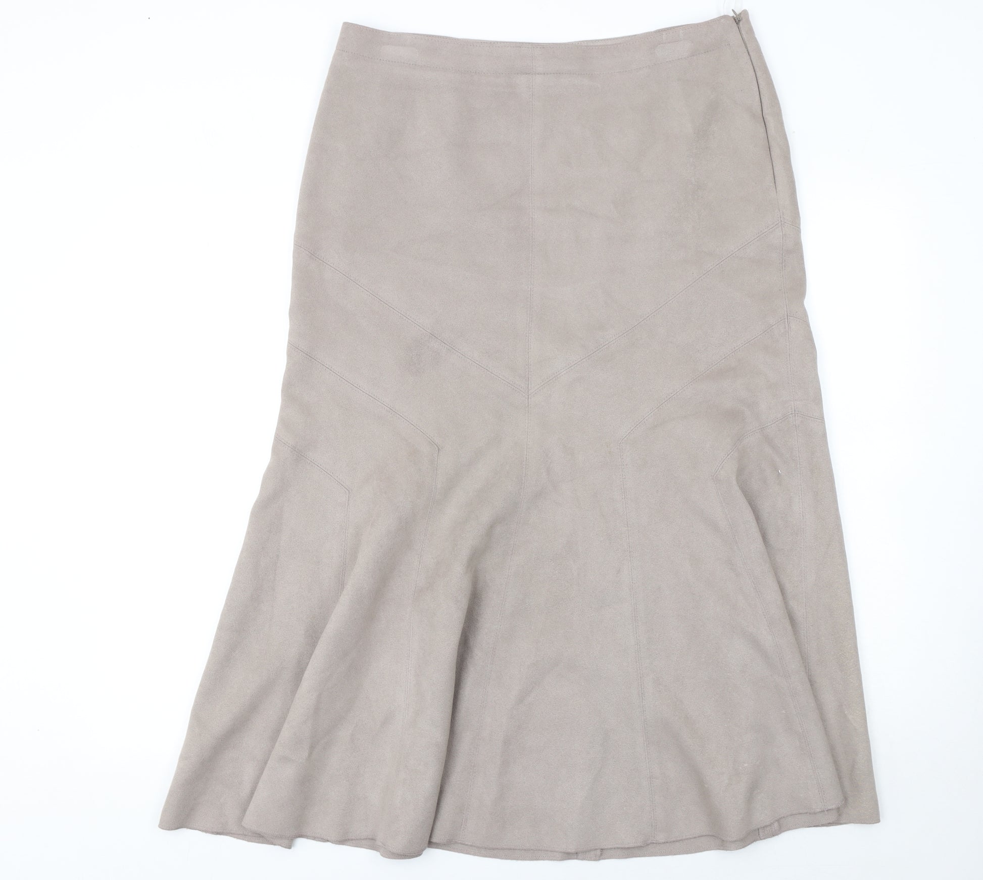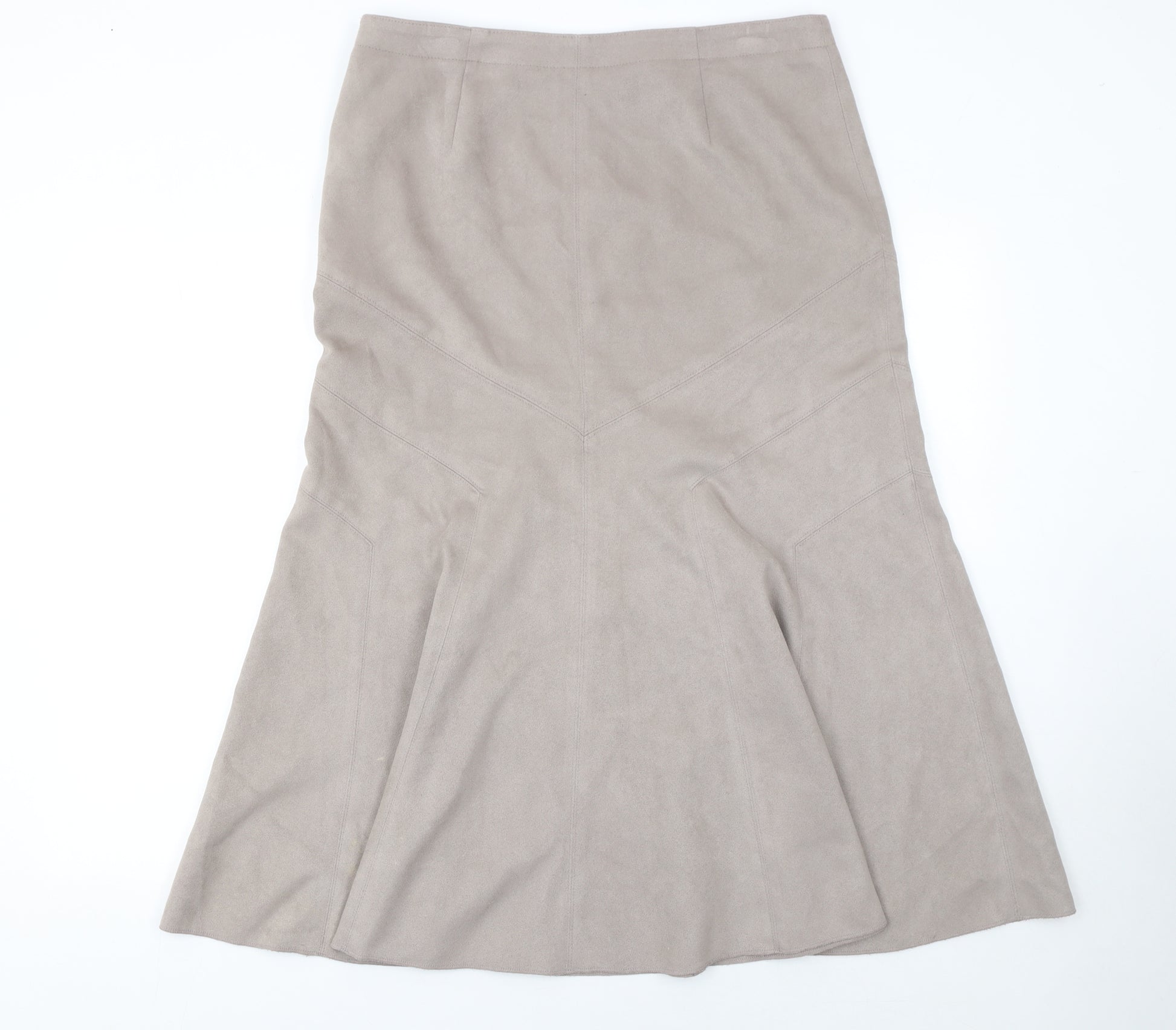 Women Beige Flare Suede Midi Skirt Size 14