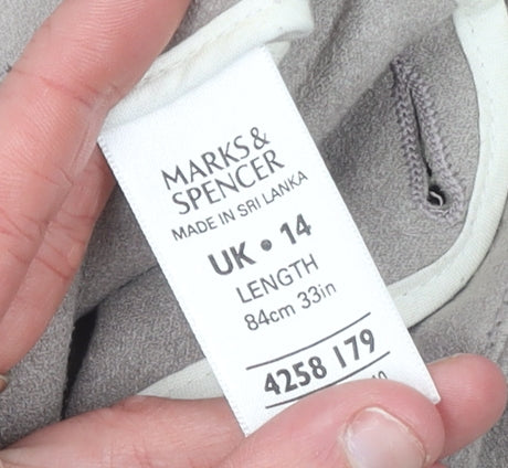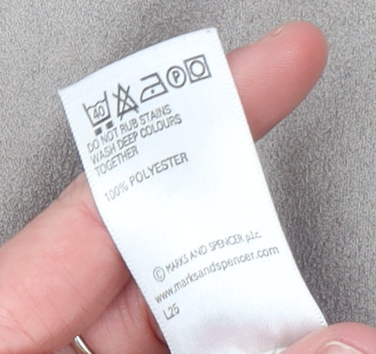 This elegant Marks and Spencer women’s beige midi skirt perfectly combines timeless sophistication with everyday comfort. Crafted from high-quality 100% polyester suede fabric, it has a soft, luxurious texture that mimics real suede while remaining lightweight and easy to care for. Its neutral beige colour makes it a versatile wardrobe essential, effortlessly complementing a variety of tops and accessories. Designed in a flattering flare silhouette, the skirt gently flows from the waist to create a feminine, graceful shape that moves beautifully with you.The mid-length cut, measuring approximately 84cm (33 inches) in length, strikes an ideal balance between smart and casual style—perfect for work, lunches, or weekend outings. It features a secure zip fastening for ease of wear and refined finishing typical of Marks and Spencer’s attention to detail. With its fully lined design, the skirt ensures a smooth and comfortable fit throughout the day, suitable for cooler autumn or winter seasons.This pre-loved skirt remains in good overall condition, showing only minor signs of wear with some light marks on the lower front, which do not detract from its chic appearance. Its versatile neutral tone and classic shape make it ideal for pairing with fitted blouses, knitwear, or boots for a polished look. Whether styled for a business-casual occasion or an effortless everyday outfit, this piece elevates any wardrobe with understated sophistication.A must-have for those who appreciate comfortable yet elegant fashion, this Marks and Spencer beige flare suede-look skirt is an affordable way to add timeless charm to your collection—stylish, soft, and ready to wear.