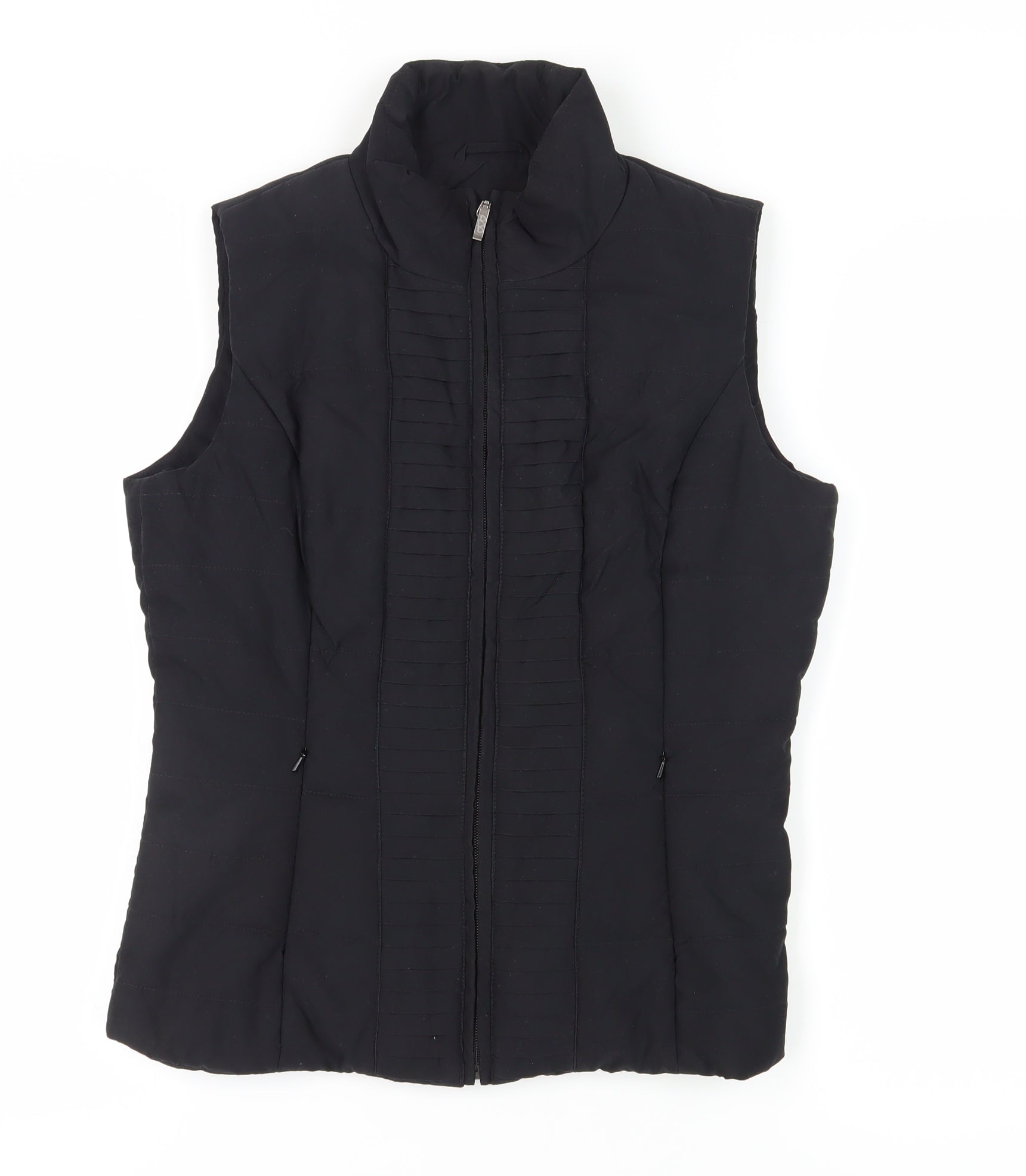 Embrace the coming seasons with this elegant women's waistcoat from Marks and Spencer's Per Una line. Crafted with a focus on comfort and style, this waistcoat is perfect for layering over your favourite outfits. Made from a durable combination of polyester and polyamide, it features a sleek black finish that effortlessly complements any wardrobe. The lightweight design, complete with a convenient full zip closure, allows for easy wear, while the polyester insulation ensures warmth without bulk. Ideal for casual occasions, this versatile piece can be dressed up or down to suit your needs. Whether heading out for a brisk walk or meeting friends for coffee, this waistcoat provides a stylish and functional addition to your outerwear collection. The sleeveless fit enhances freedom of movement, and the machine-washable fabric promises hassle-free care. Add this black waistcoat to your attire and enjoy a refined look with a touch of practicality.