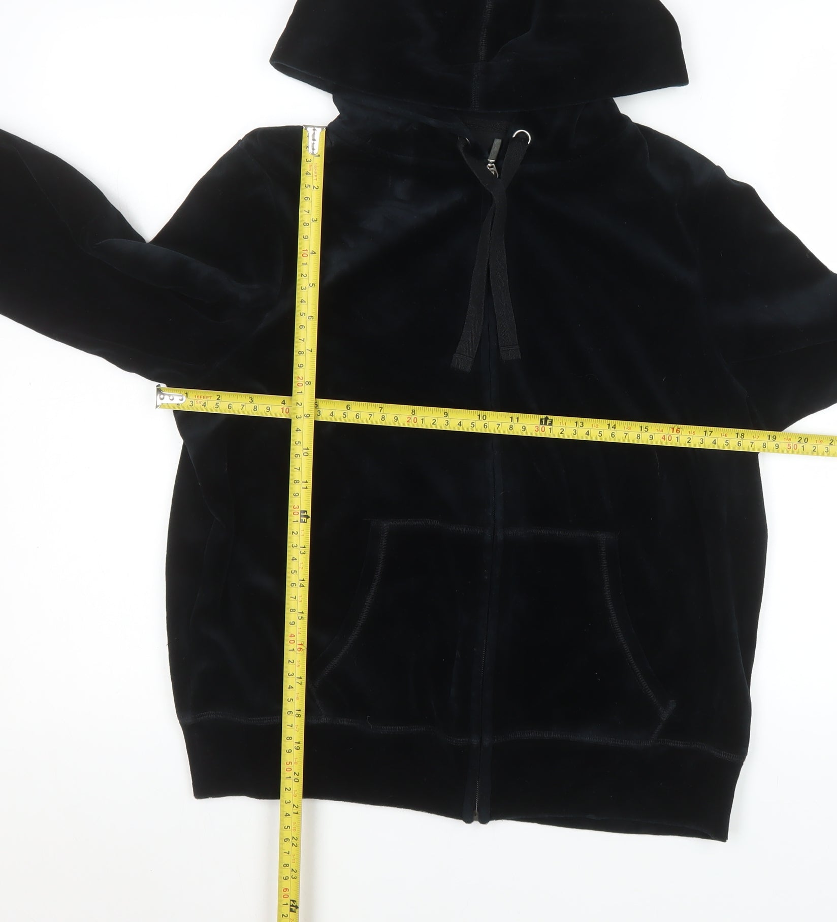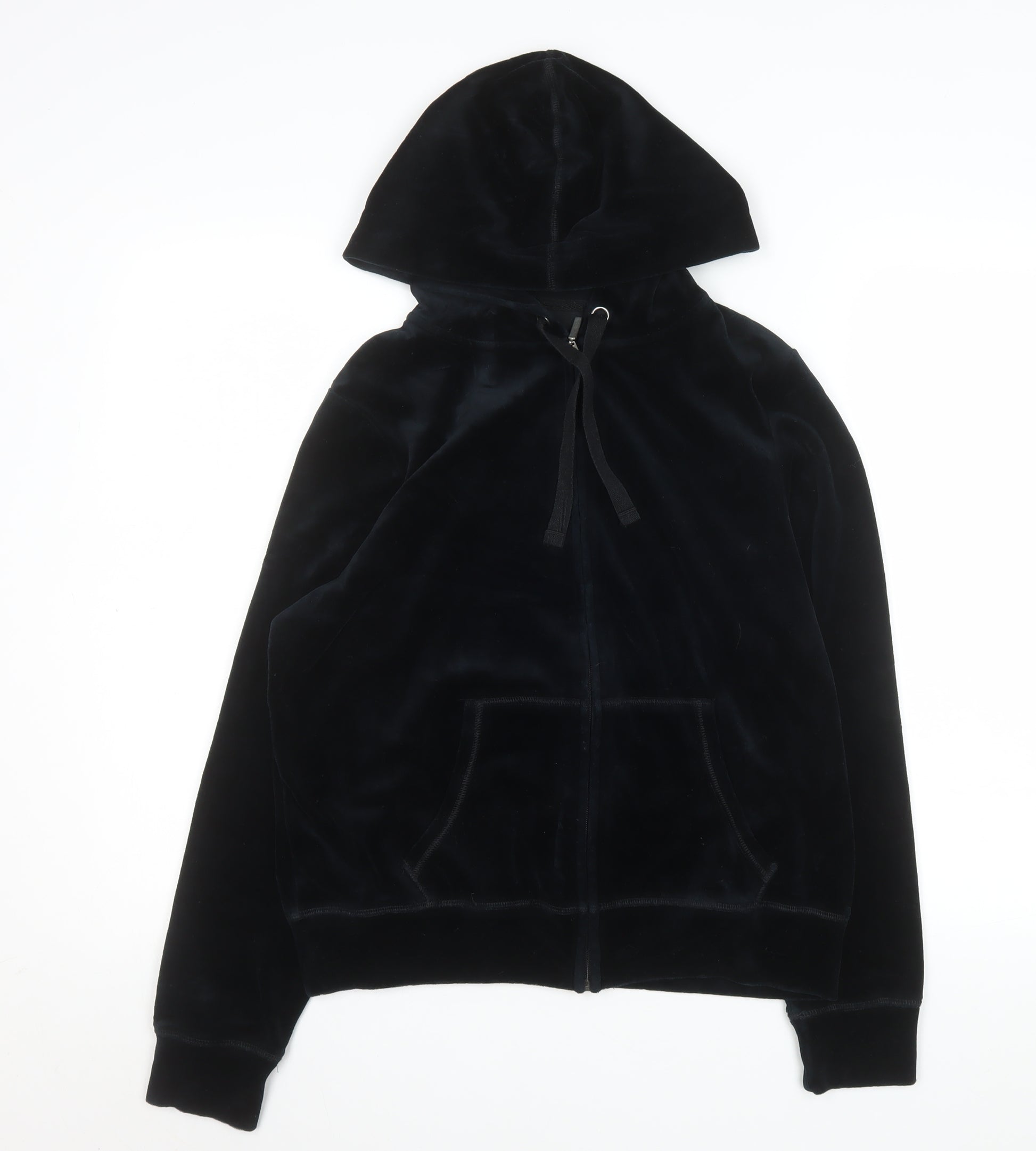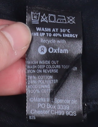 Add everyday luxury to your casual wardrobe with this women’s black velour hooded jacket from Marks and Spencer. Designed in a UK size 16, this soft and comfortable piece strikes the perfect balance between style and warmth, ideal for layering across multiple seasons. Crafted from a rich blend of cotton and polyester, this jacket boasts a plush velour finish that feels incredibly smooth to the touch while providing a subtle sheen that elevates its appearance. The design features a classic full-zip front for easy wear, a drawstring hood for extra comfort, and front kangaroo pockets that add practicality and relaxed styling. The long sleeves and ribbed cuffs contribute to a flattering silhouette that stays snug while offering freedom of movement. Perfect for cooler spring days, crisp autumn evenings, or as a cosy layer in winter, this versatile jacket blends comfort with timeless casual appeal. Pair it effortlessly with jeans, joggers, or leggings for that laid-back yet refined look. The machine-washable fabric makes it simple to care for, ensuring longevity and continued softness even after repeated wear. Whether you’re lounging at home, stepping out for a weekend stroll, or running errands, this hooded zip-up jacket remains a wardrobe staple that embodies both functionality and understated elegance. With its clean black colour, smooth velour texture, and subtle sheen, the Marks and Spencer velour jacket is an easy choice for anyone seeking a mix of comfort and sophistication without compromising practicality. An ideal blend of form and function, it reflects the dependable quality and thoughtful design synonymous with Marks and Spencer clothing, offering a staple piece that never goes out of style.