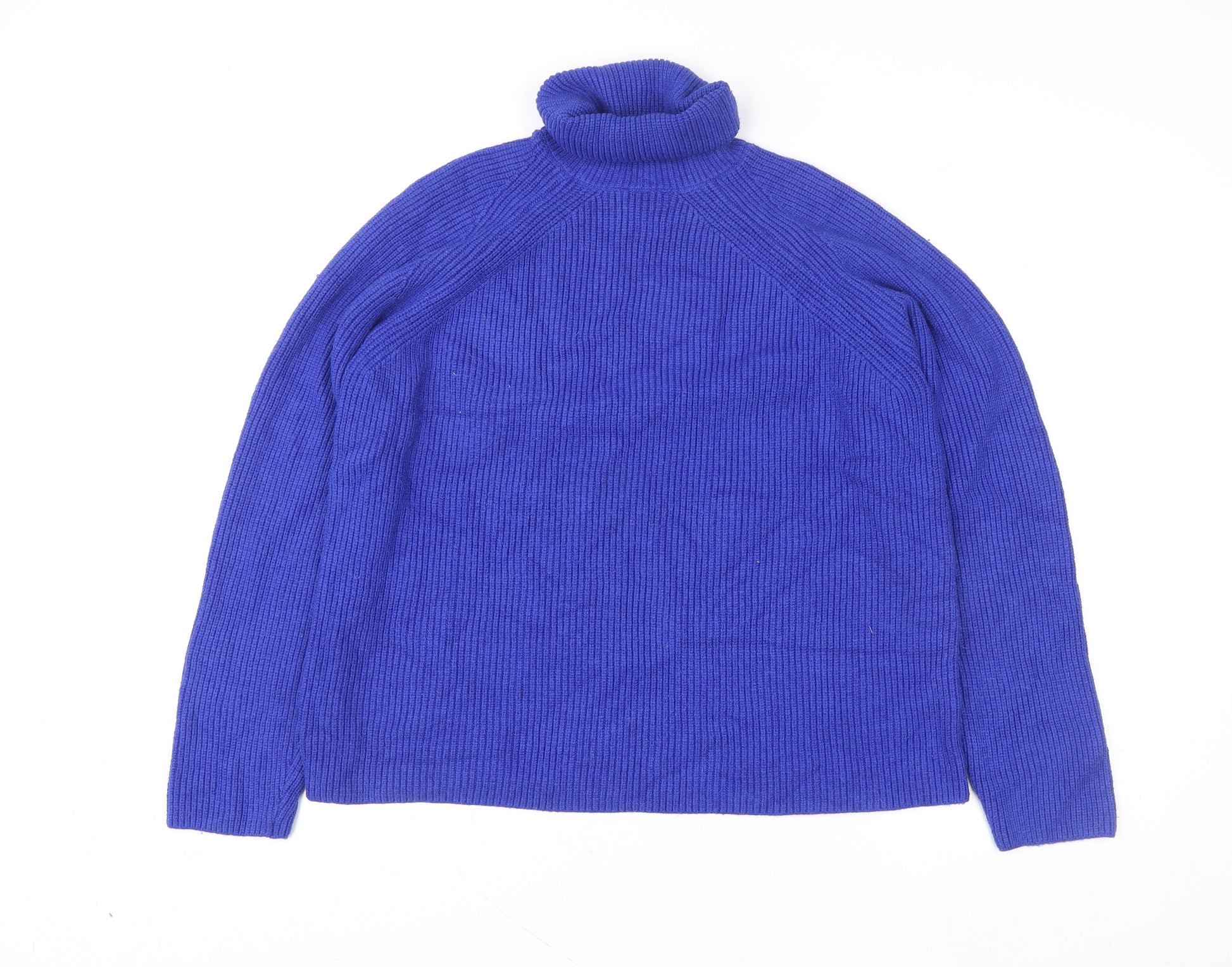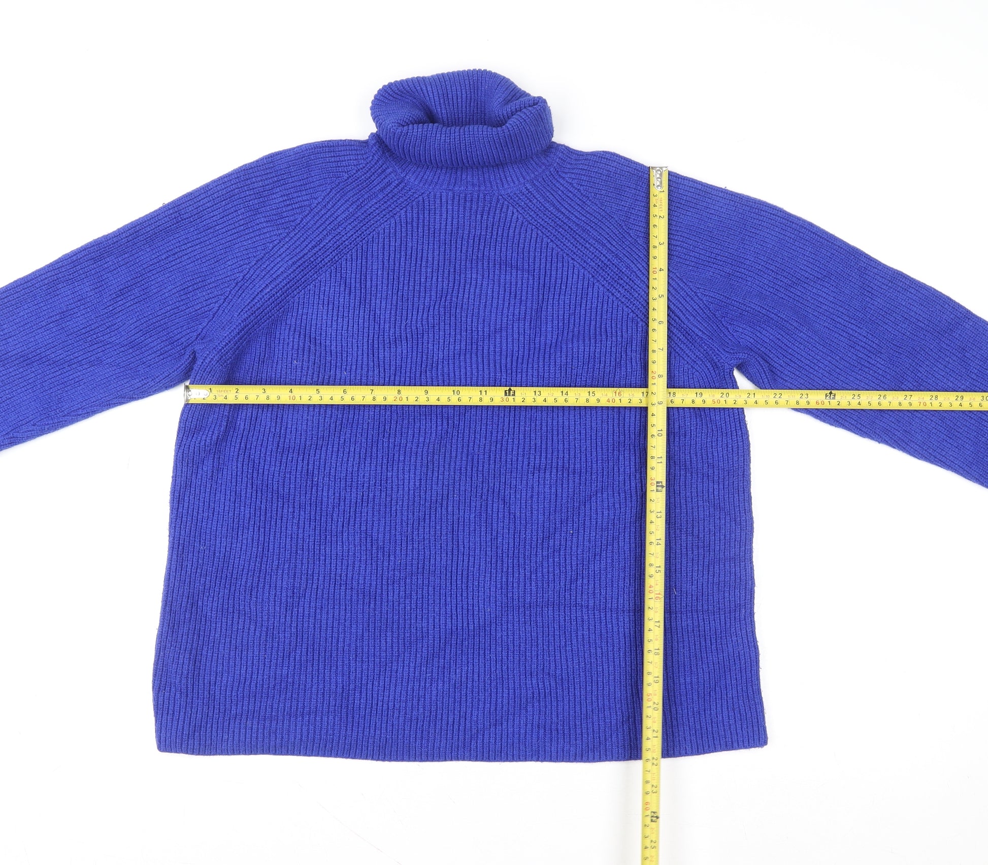 Women Blue Roll Neck Ribbed Knit Pullover Sweater M