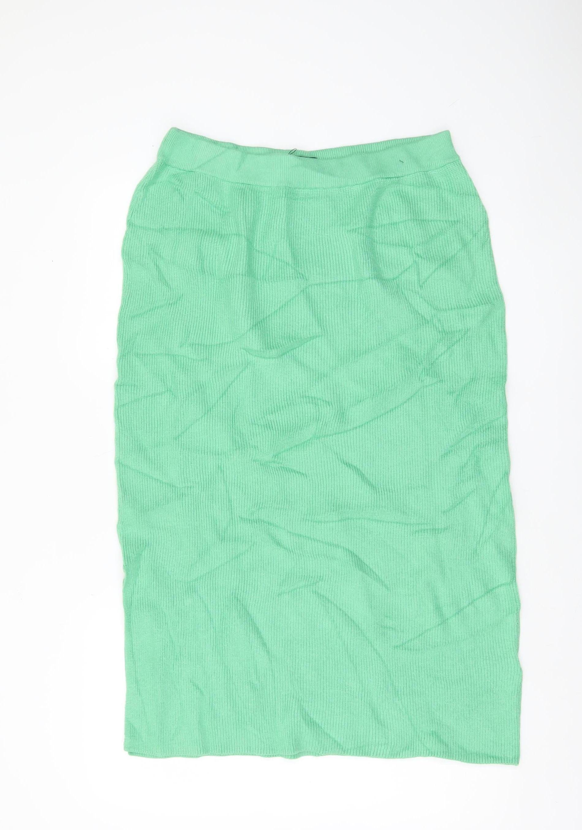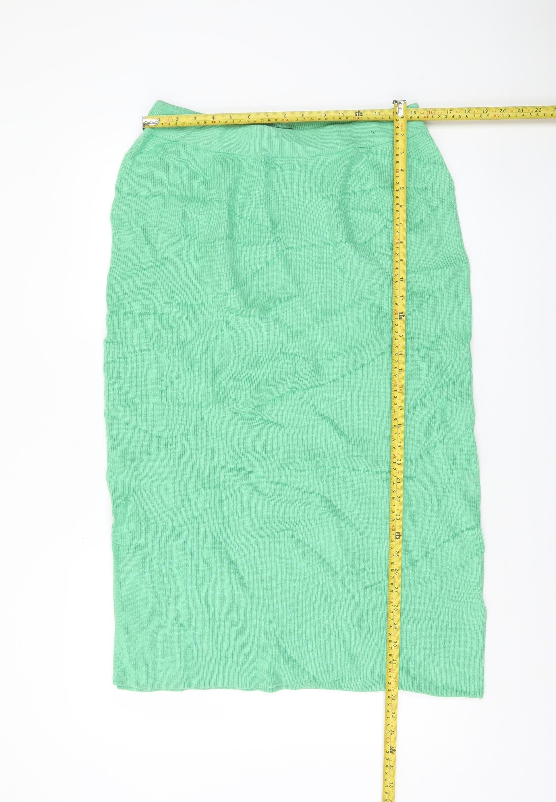 This beautiful green knit midi pencil skirt from Marks and Spencer is the perfect addition to any modern wardrobe. Made for women, this M&S Collection piece combines style, comfort, and practicality in one versatile garment. Crafted from a high-quality viscose, polyester, and polyamide blend, the skirt ensures a soft yet durable texture with natural elasticity, making it comfortable for all-day wear. The ribbed knit fabric gives it a refined, contemporary look while maintaining a flattering silhouette. Designed in a straight and pencil style, the skirt gently hugs your figure and falls to a chic midi length, ideal for both casual and work settings. The pull-on waistband ensures ease of wear, eliminating the need for zips or buttons, while the elasticated fit offers flexibility and freedom of movement. The subtle texture and solid green colour make it easy to pair with a wide range of tops and accessories, whether you prefer a tucked-in blouse for office style or a relaxed tee for a casual day out. As a new item with tags attached, it’s in pristine condition and ready to wear straight away. This skirt suits all seasons – lightweight enough for spring and summer, yet perfect for layering with tights in autumn. It’s machine washable for easy care and retains its shape beautifully after each wash. Ideal for women seeking a combination of effortless elegance and everyday practicality, this Marks and Spencer green knit pencil skirt offers timeless appeal with comfort at its core. A clean, simple piece that blends well with smart or casual ensembles, making it a must-have wardrobe staple for effortless feminine style.