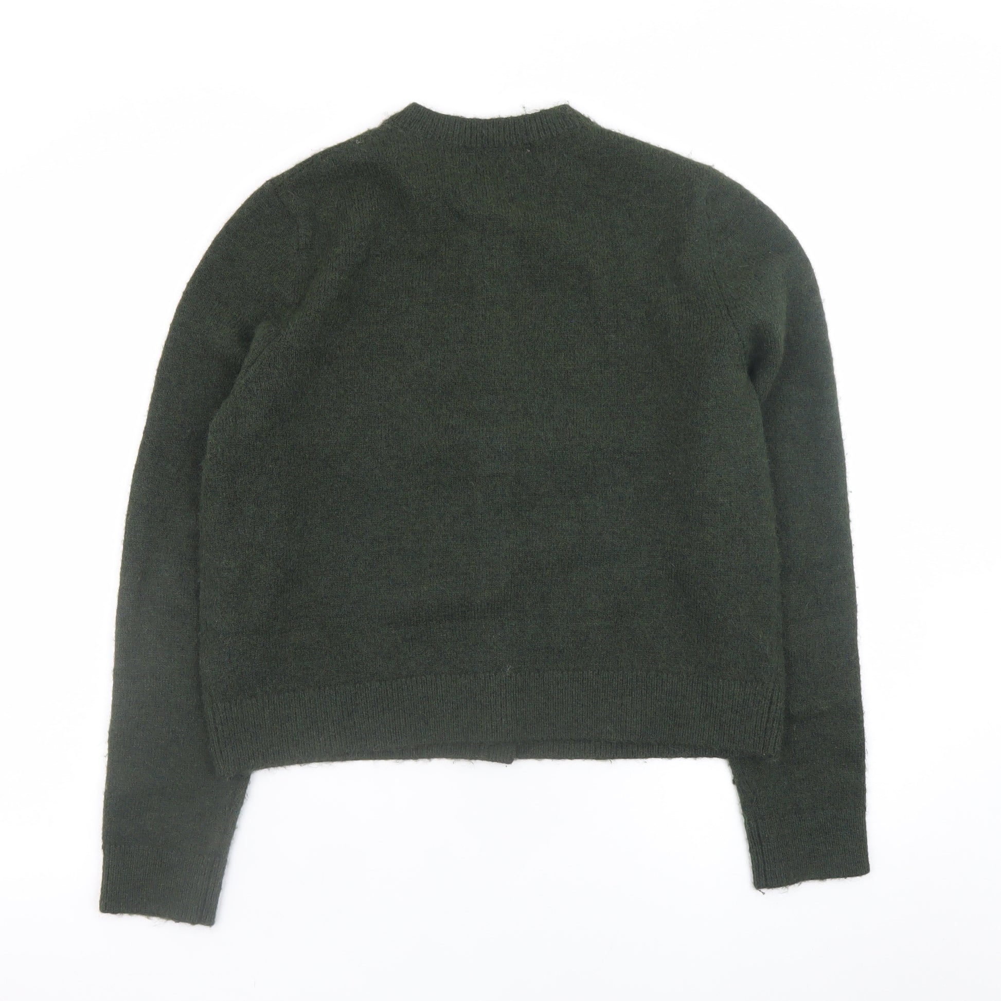 This Marks and Spencer women's cardigan in a rich forest green hue is a versatile piece for your wardrobe. Crafted from a high-quality blend of polyester, acrylic, polyamide, wool, and elastane, it combines durability with the softness and comfort of natural fibres. The fabric’s gentle knit texture offers a cosy and warm feel, perfect for layering during cooler seasons. Designed with a classic crew neckline and a fully buttoned front, this cardigan delivers timeless style that pairs effortlessly with both casual and smart outfits. The long sleeves and regular fit ensure comfortable wear, while the fine ribbed hem and cuffs add subtle structure. Its lightweight yet insulating construction makes it ideal for autumn and winter, while the machine-washable care instructions provide added practicality for everyday use. Whether worn over a blouse for work or styled with jeans for a casual look, this cardigan from Marks and Spencer offers understated elegance. The simple, no-pattern design and deep green colour make it easy to coordinate with a variety of outfits and accessories. This item remains in excellent condition with minimal signs of previous wear and no visible flaws, reflecting the quality craftsmanship that Marks and Spencer is known for. Enjoy comfort, warmth, and enduring style with this classic knit, suitable for daily wear or office layering. An essential staple piece that combines sophistication and versatility in one, making it an ideal addition for anyone seeking an elegant yet practical wardrobe go-to.