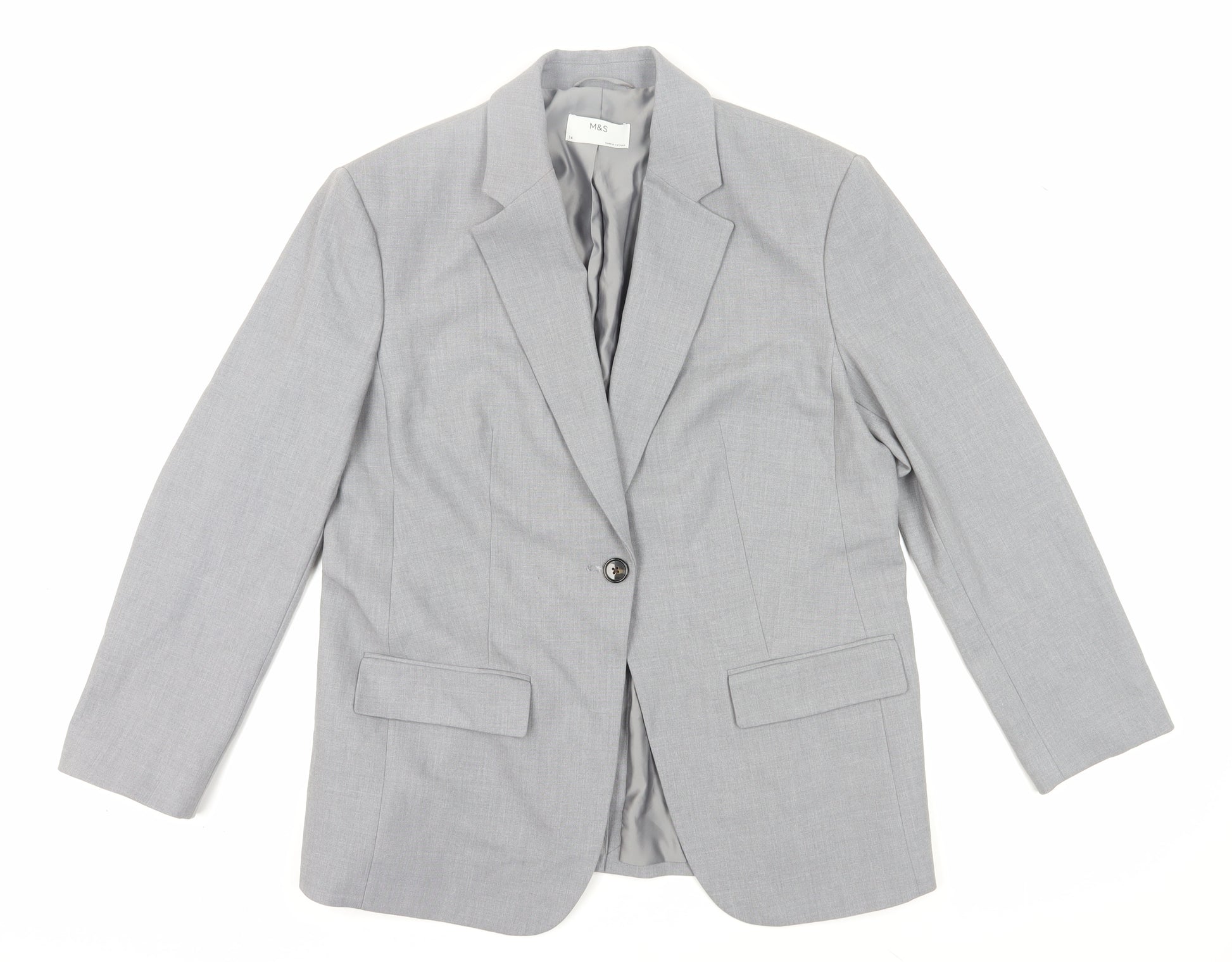 Step up your wardrobe with this elegant grey blazer from Marks and Spencer. Designed for women who appreciate the timeless appeal of classic styling, this blazer is perfect for a range of occasions, from work to casual outings. Its sleek grey colour is versatile, making it easy to pair with a variety of outfits. Crafted from 100% polyester, the blazer offers a lightweight feel while maintaining durability and shape, ensuring you look polished throughout the day. With a long sleeve design and simple yet sophisticated silhouette, this piece is ideal for layering over blouses and dresses. Although pre-loved, it remains in excellent condition with no visible flaws, promising both quality and style. An affordable addition to any closet, it reflects Marks and Spencer's commitment to refined clothing. Pair it with matching trousers or a skirt for a coordinating look that will suit both professional and casual settings.