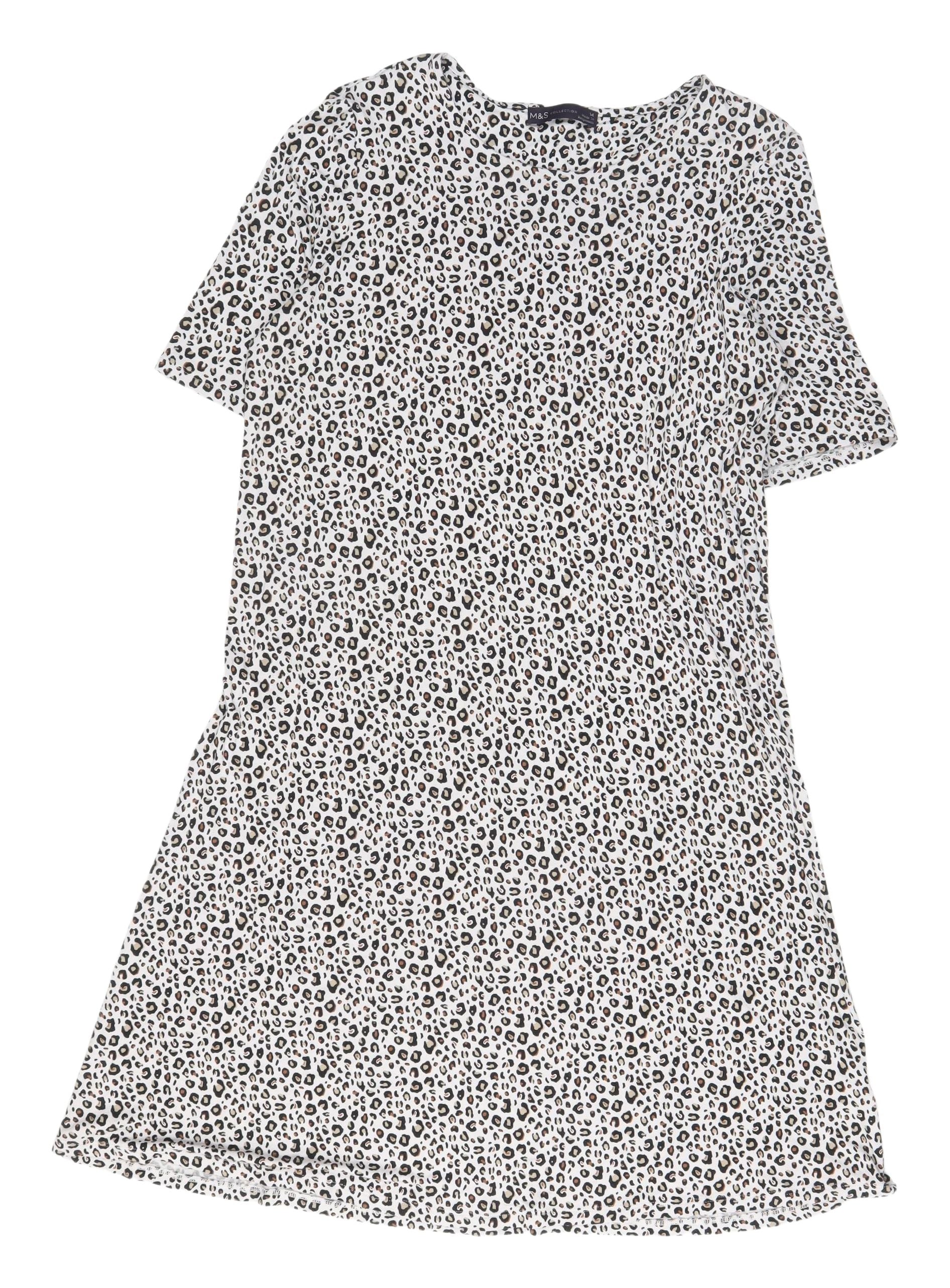 Elevate your everyday wardrobe with this chic Marks and Spencer shift dress, designed for versatile style and ultimate comfort. In an elegant shade of ivory with a captivating animal print pattern, this dress is perfect for adding a touch of sophistication to your casual outings. Crafted from a soft jersey fabric that blends 95% viscose with 5% elastane, it offers a comfortable fit with just the right amount of stretch. The short sleeves and crew neck add to the relaxed vibe of this wardrobe staple, ensuring you stay stylish yet comfortable all day long. Whether you're exploring the city or catching up with friends, this dress transitions effortlessly from day to night. Machine washable for easy care, this dress is both practical and fashionable, making it a must-have addition to your collection. Don't miss out on this timeless piece that's perfect for any casual occasion.