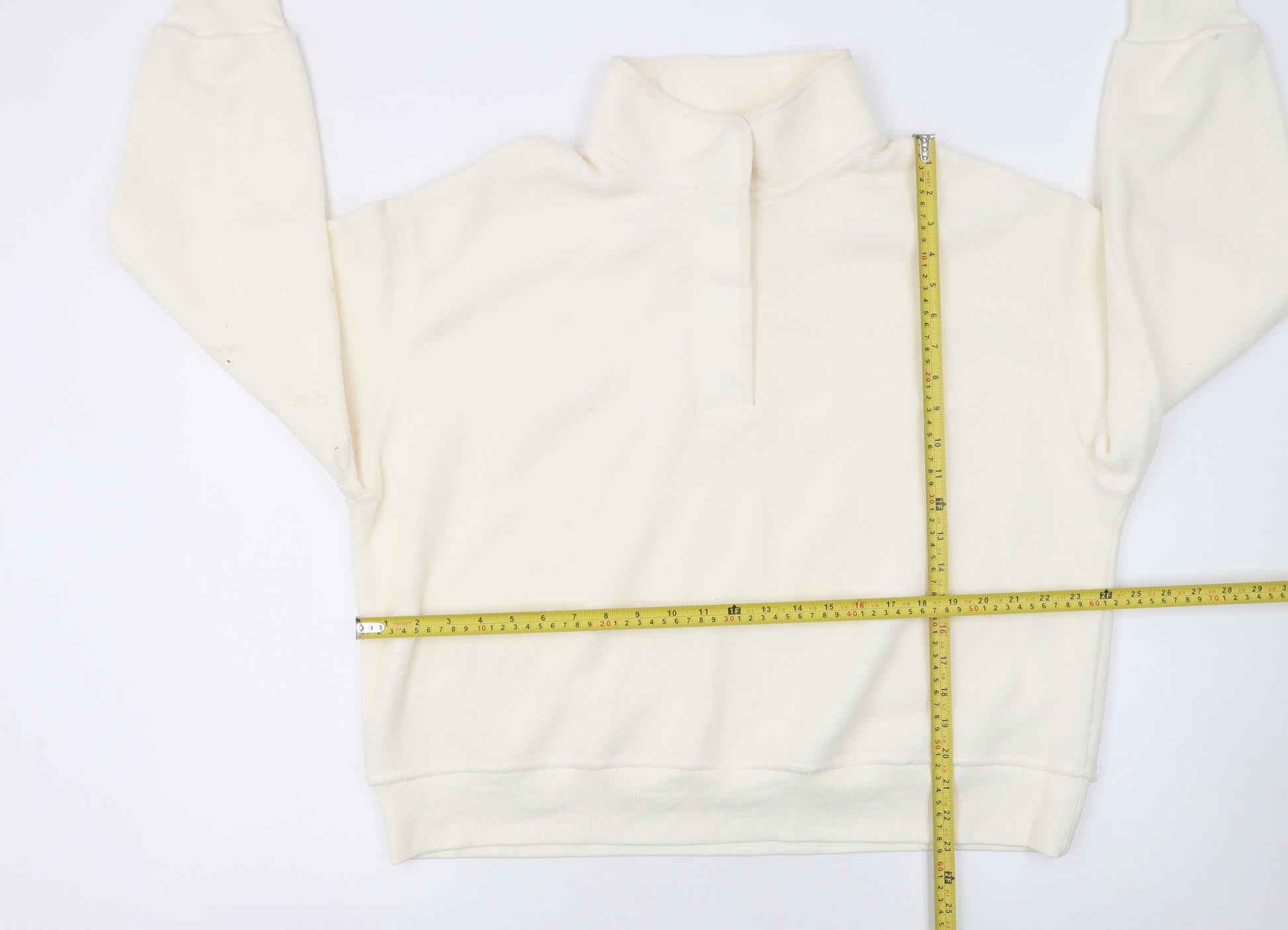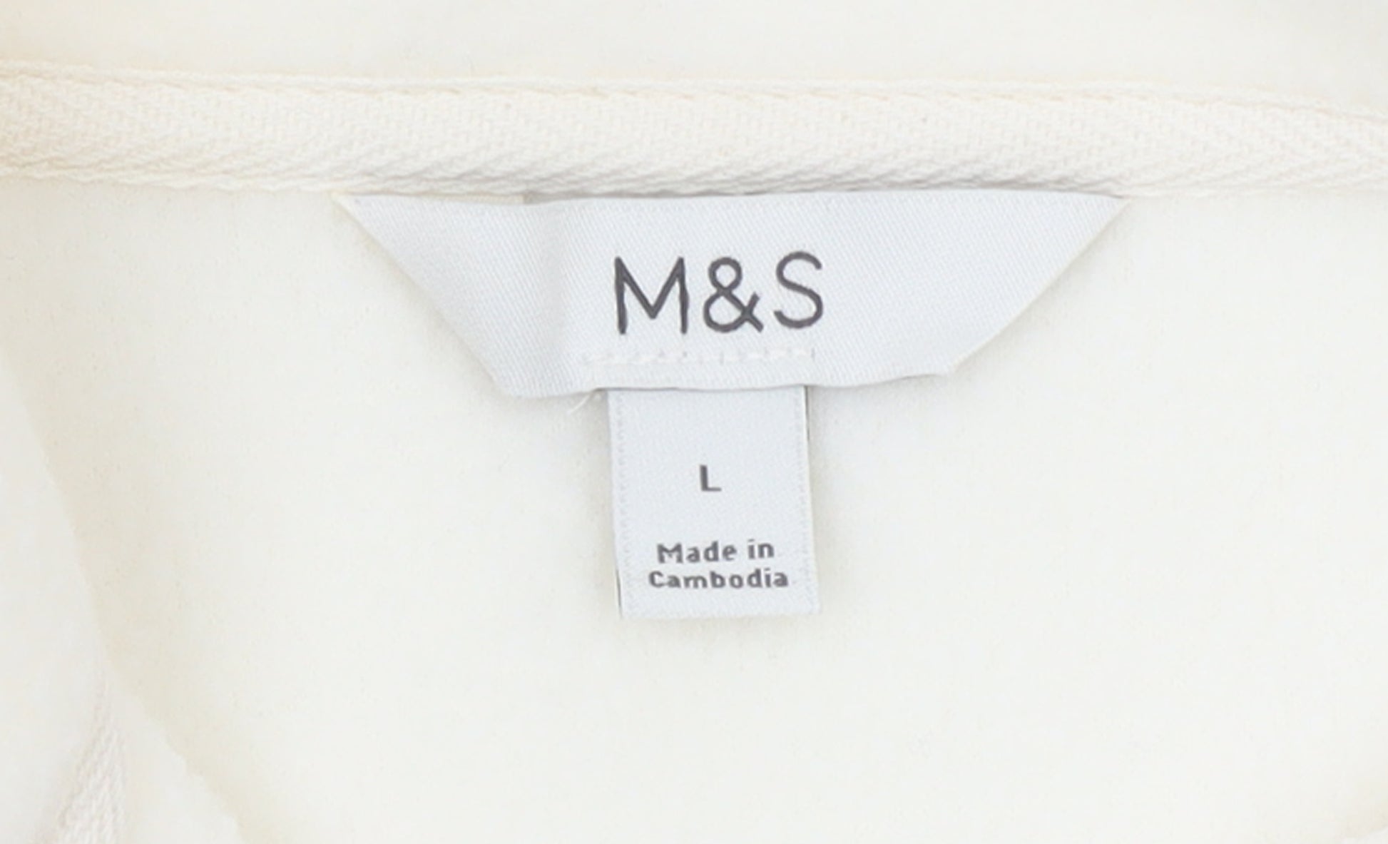 Stay cosy and effortlessly stylish in this Marks and Spencer women’s ivory fleece pullover sweatshirt. Crafted for comfort and versatility, this soft long-sleeved piece is ideal for layering during the cooler months. The relaxed fit ensures ease of movement while maintaining a flattering silhouette suitable for everyday wear. Designed in a plush fleece fabric, it feels comforting against the skin and retains warmth, making it perfect for lounging at home, casual outings, or layering beneath outerwear during autumn and winter. The pullover design features a high neck for additional warmth and a clean, minimal aesthetic that complements jeans, joggers, or leggings. Subtle ribbed cuffs and hem add definition and help keep the chill out, while the smooth ivory tone creates a timeless, neutral palette lending itself effortlessly to a variety of outfits. Marks and Spencer’s attention to quality ensures durability and lasting wear, with the easy-care material allowing for routine machine washing without losing shape or softness. This fleece sweatshirt’s unfussy design and cosy structure make it an essential wardrobe staple for women and teens alike. Whether you’re heading for a leisurely walk, unwinding indoors, or creating a minimalist layered ensemble, this fleece pullover provides comfort, style, and everyday practicality in one elegant package. A perfect addition to your casual collection that blends texture, simplicity, and warmth seamlessly.