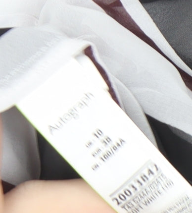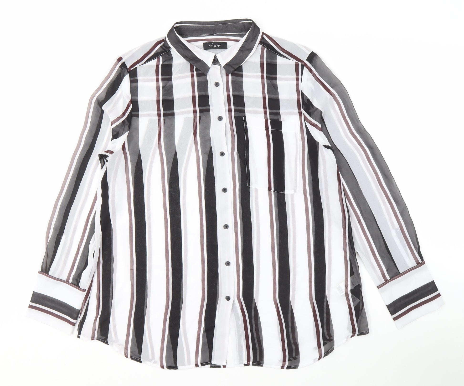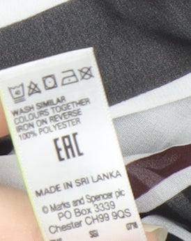 Introducing a tasteful addition to your wardrobe from Marks and Spencer's exquisite collection, this women's button-up shirt is perfect for any smart-casual ensemble. This piece beautifully merges contemporary style with classic appeal through its multicoloured striped design. Crafted from 100% polyester, it offers durability alongside a lightweight feel, making it an ideal choice for any season. The collared neckline and classic long sleeves add a touch of formality, making it suitable for both workwear and leisurely outings. The button closure provides a sleek finish, while the regular fit ensures maximum comfort. This shirt is a harmonious blend of style and versatility, easily complementing various bottoms in your existing wardrobe. Despite being pre-owned, it is in excellent condition, showing no signs of wear, ensuring you a product that appears almost new. Perfectly tailored to provide a flattering silhouette, this shirt can seamlessly transition from a day at the office to an evening out. Refresh your wardrobe with this timeless button-up, an essential pick that speaks volumes of your sartorial elegance and refinement.