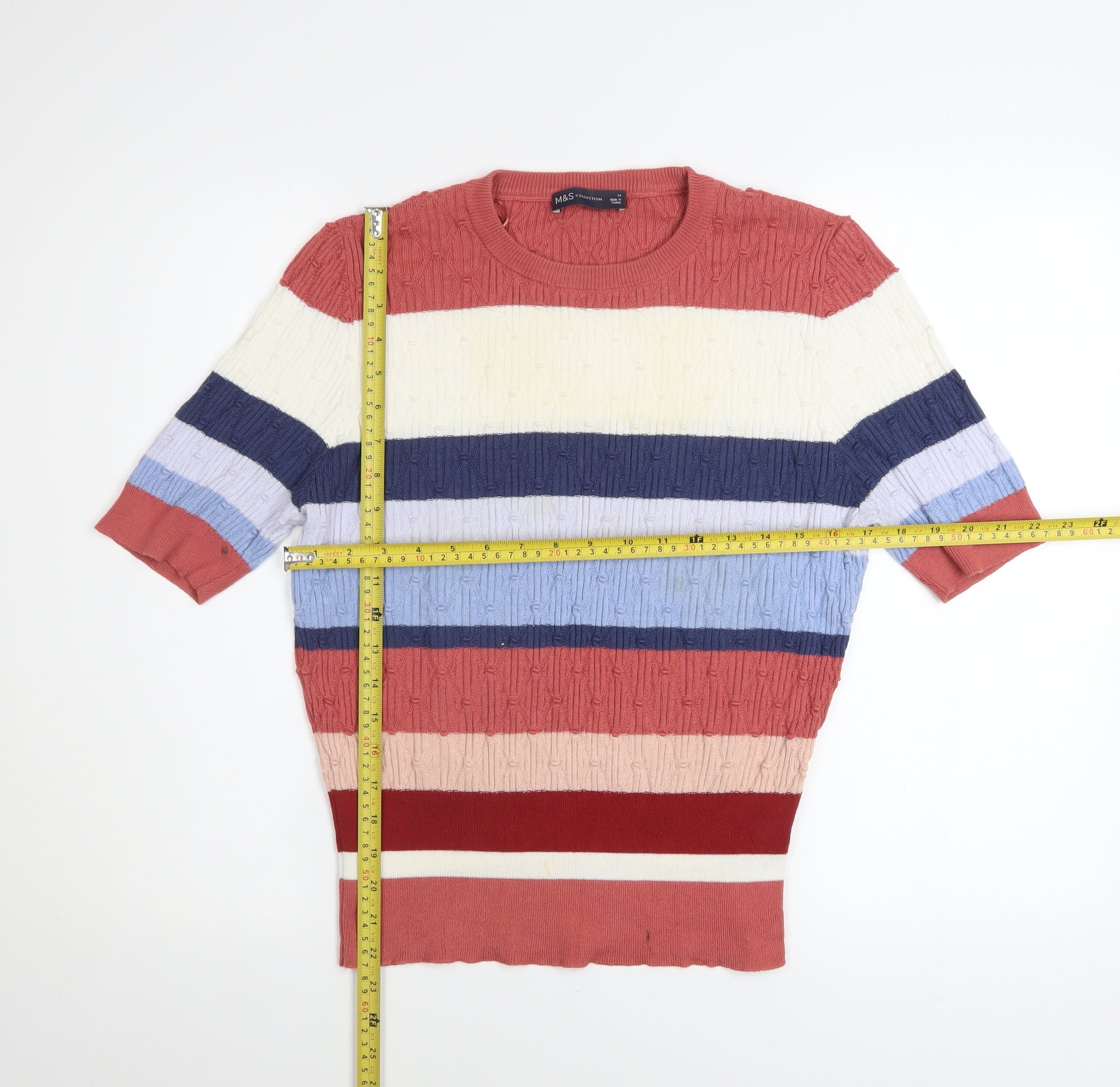 Women Multicoloured Striped Knit Short Sleeve Top Size 14