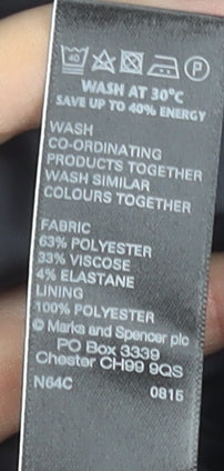 Discover timeless sophistication with this Marks and Spencer Women’s Petite Navy Pencil Skirt in size 12. Expertly crafted for a flattering silhouette, this structured piece combines elegance with comfort perfectly suited for business, workwear, or smart-casual occasions. The pencil shape and knee-length cut create a sleek, professional profile that pairs effortlessly with blouses, shirts, or tailored blazers. Designed in a rich navy tone, it’s a versatile shade that complements an array of colours and styles, making it a wardrobe staple for any modern woman. The skirt is tailored from a premium blend of polyester, viscose, and a touch of elastane, ensuring both softness and flexibility for ease of movement throughout the day. Fully lined for comfort and durability, it features a discreet rear zip closure and a neat back slit detail that adds a subtle hint of femininity while allowing for effortless movement. As part of the M&S Collection, it demonstrates the brand’s dedication to quality and timeless British design. The fabric’s twill texture offers a delicate structure that elevates its refined look, suitable for year-round wear. Whether you style it with heels for a polished office appearance or flats for a chic everyday outfit, this skirt delivers style and practicality in equal measure. The durable, machine-washable design makes it easy to care for, perfect for regular use while maintaining its crisp, professional finish wash after wash. Ideal for women who appreciate understated sophistication and comfort, this Marks and Spencer petite pencil skirt is an essential addition to any wardrobe. Its carefully tailored cut and versatile navy hue make it an investment piece that transitions seamlessly from desk to dinner, offering enduring elegance and smart versatility you can rely on season after season.