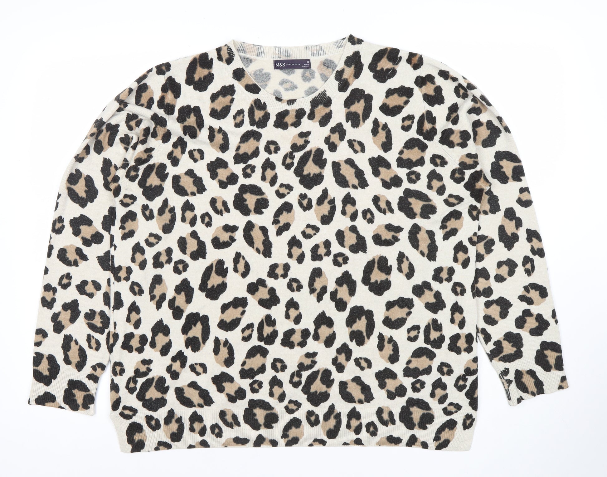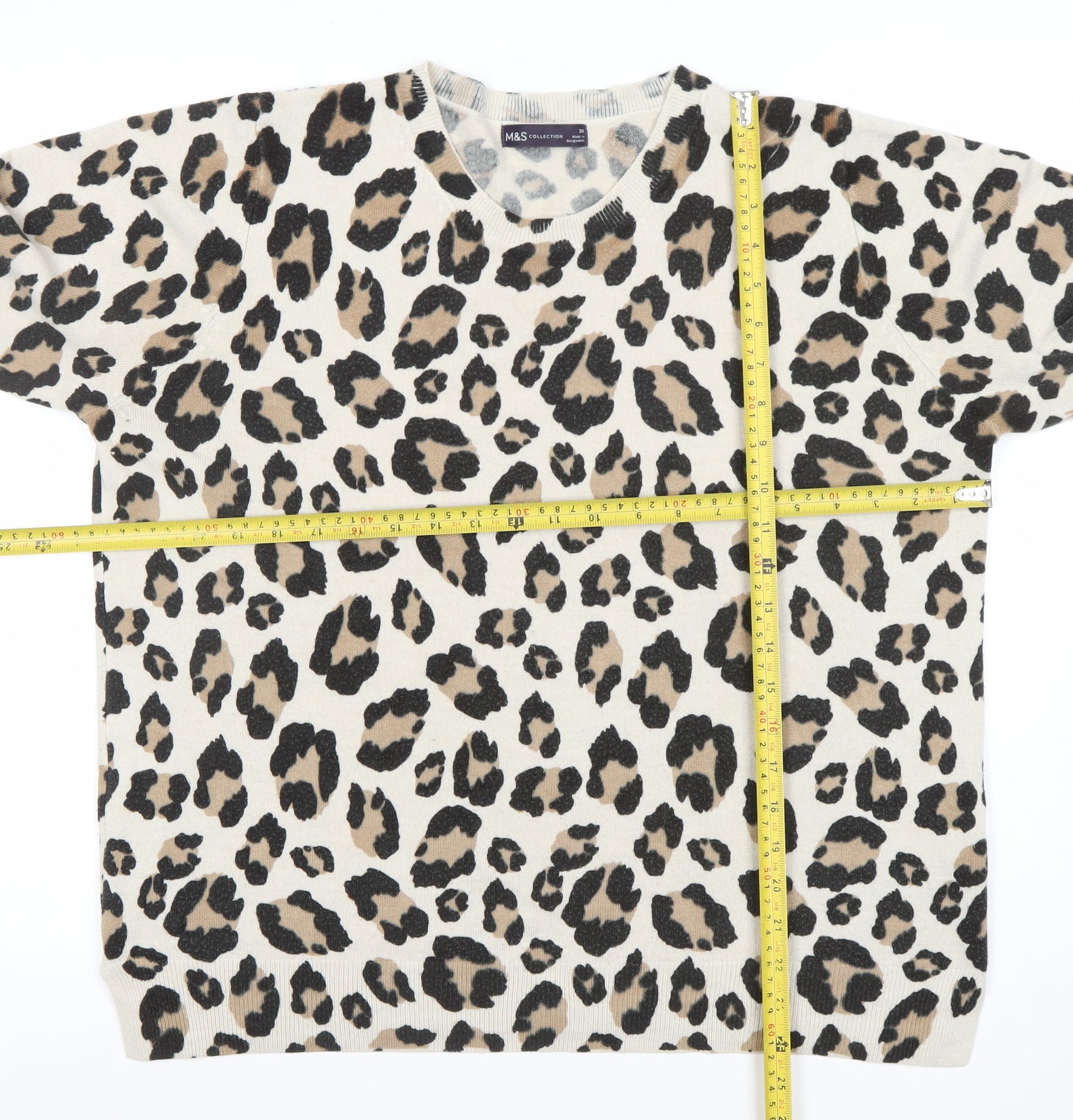Women’s Beige Leopard Knit Long Sleeve Top Size 20