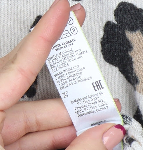 Make a bold yet effortlessly chic statement with this Marks and Spencer Women’s Leopard Knit Top, designed to add a touch of personality to your casual wardrobe. Crafted from 100% acrylic, this soft and lightweight knit offers both comfort and style, making it ideal for day-to-day wear during cooler months. The beige base paired with striking leopard print detailing creates a timeless animal-inspired pattern that’s easy to style with a variety of bottoms – from jeans to tailored trousers or skirts. The crew neckline and long fitted sleeves give it a classic silhouette, while the finely ribbed cuffs and hem help maintain a flattering, relaxed shape. Perfect for layering under a jacket during autumn and winter or wearing alone for a statement look, this jumper from Marks and Spencer balances practicality and fashion with ease. The breathable knit fabric ensures comfort throughout the day, while the pullover design makes dressing quick and convenient. Whether heading out for a coffee date, relaxing at home, or dressing up for a casual outing, this versatile piece transitions seamlessly across multiple occasions. Pair it with neutral tones for subtle sophistication or accentuate the print with black accessories for a modern, confident look. Designed for regular fit comfort, this women’s top embodies casual elegance and is set to become a staple in your collection. In excellent pre-owned condition, it shows minimal signs of wear with no visible flaws, retaining its original softness and shape. Elevate your everyday style effortlessly with this Marks and Spencer knit animal print top — ideal for women who love timeless wardrobe staples with an edge of wild flair.