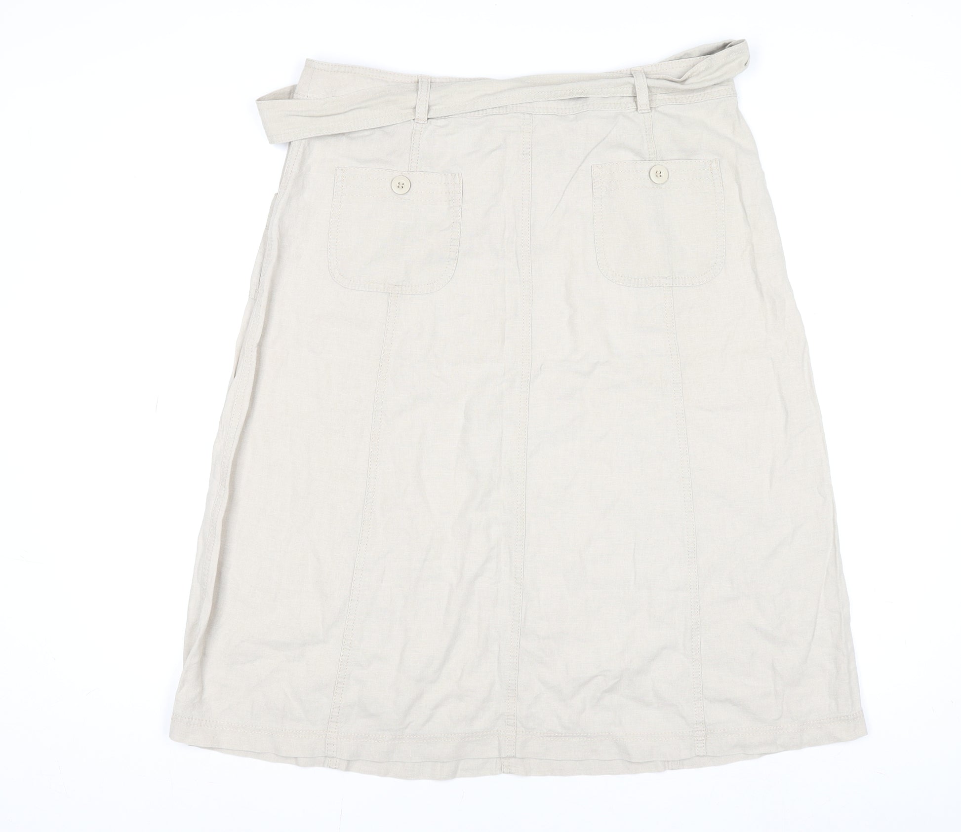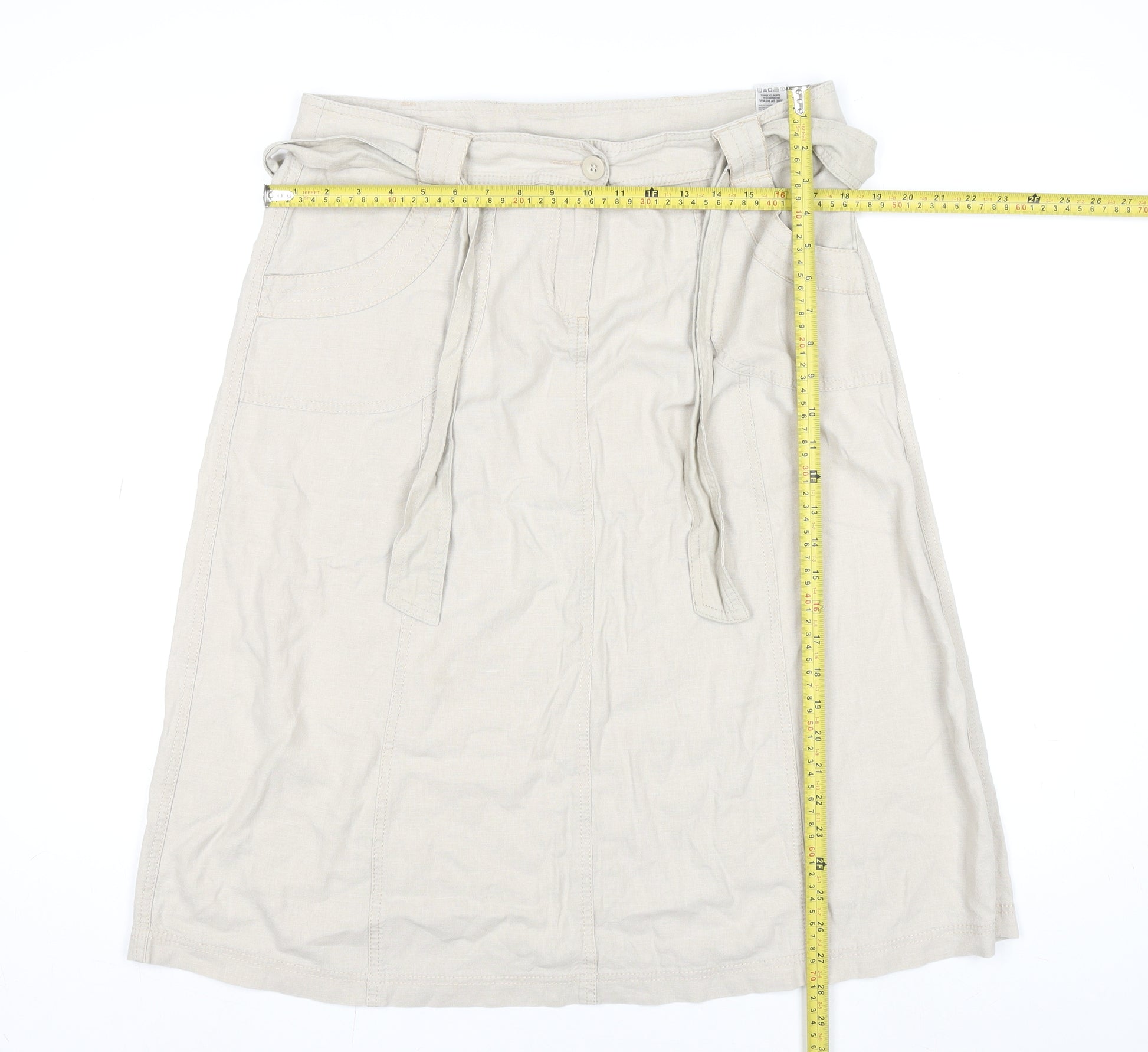 Women’s Beige Linen Blend Knee Length A-Line Skirt Size 14