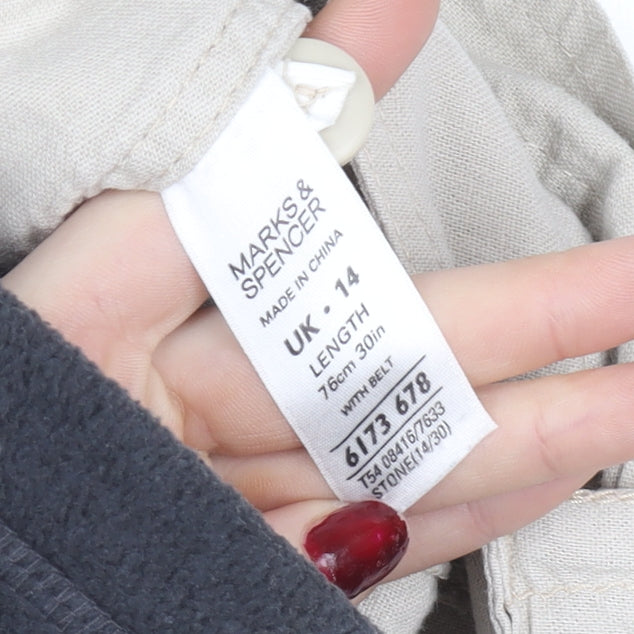 This Marks and Spencer women’s beige A-line skirt combines timeless design with comfort and versatility. Crafted from a soft and breathable blend of 55% linen and 45% viscose, it offers a naturally lightweight feel ideal for warmer months. The neutral beige colour adds understated sophistication, making it easy to pair with a variety of tops and footwear for casual outings, relaxed office days, or holiday styling. The skirt features a flattering knee-length cut (approximately 76cm/30in), designed to enhance movement and comfort while maintaining classic elegance. Practicality meets style with front and back pockets that add everyday functionality, while the matching belt subtly defines the waist for a flattering silhouette. The button and zip fastening provide a secure fit, and its lined finish ensures comfortable wear throughout the day. Suitable for spring and summer seasons, this skirt embodies the relaxed yet refined aesthetic that Marks and Spencer is known for. With its natural fibres and easy machine-wash care, it’s an effortless addition to any capsule wardrobe. Light signs of previous use and slight creasing are present, but overall condition is very good, offering excellent value for a pre-loved designer staple. Whether you’re dressing it up with a blouse and sandals or keeping it casual with a simple tee, this classic knee-length linen blend skirt promises versatile wear and lasting appeal, making it a go-to favourite for effortless everyday styling.