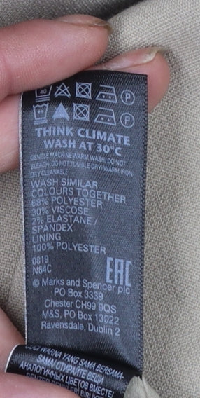 Step into effortless sophistication with this Marks and Spencer Women’s beige tailored blazer. Crafted from a soft, woven fabric, it combines timeless elegance with everyday wearability. The neutral beige colour adds refined versatility, making it suitable for both professional and casual settings. With a classic cut and structured fit, it enhances the silhouette while ensuring comfort throughout the day. This stylish single-breasted blazer features clean lines, long sleeves, and flap front pockets that underline its smart aesthetic. The absence of front buttons offers a contemporary twist, allowing easy layering over blouses, tops, or dresses. Its lightweight composition — 63% polyester, 30% viscose, and 7% elastane — provides the right amount of stretch, making it comfortable while maintaining its shape. The jacket is fully lined with 100% polyester, ensuring a smooth inner feel and professional finish.The blazer’s tailored design makes it perfect for business meetings, formal events, or dressing up casual denim for a polished daytime ensemble. Its classic beige tone offers maximum wardrobe flexibility, seamlessly pairing with earth tones, monochromes, or brighter colours. The long sleeves and structured shoulders project confidence and sophistication, ideal for creating a workwear statement or an elegant evening outfit.Suitable for spring, summer, and autumn wear, this blazer easily transitions between office, travel, and social occasions. The machine washable fabric adds convenience, allowing easy care without compromising quality. Designed in size UK 8 (EUR 36), it offers a classic fit that flatters while remaining comfortable.Presenting M&S’s hallmark craftsmanship, this blazer delivers durability, versatility, and timeless British style. Whether layered over tailored trousers, a pencil skirt, or smart jeans, it promises to elevate any outfit with understated elegance. Perfect for women who appreciate smart fashion with lasting appeal, this Marks and Spencer jacket is a wardrobe essential that blends professionalism with a feminine edge.