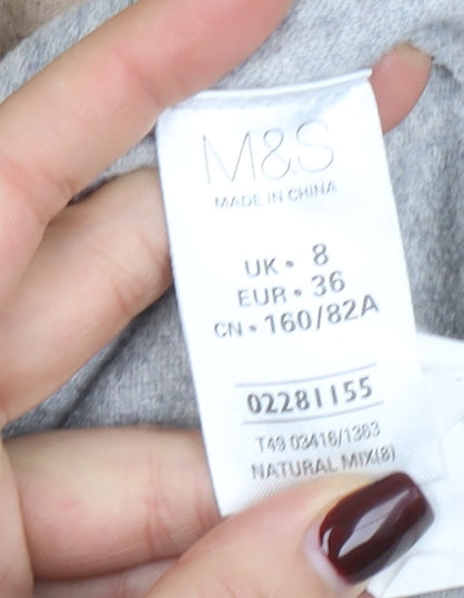 Elevate your wardrobe with this sophisticated Marks and Spencer Women’s Coatigan, designed to combine the structured elegance of a coat with the relaxed comfort of a cardigan. Crafted from a premium wool blend, the neutral beige outer shell with a soft grey inner lining offers timeless style and versatility. This long-length piece is tailored in a regular fit, providing an effortlessly chic silhouette while ensuring comfort and warmth during cooler months. Made from a blend of 52% polyester, 37% wool, 6% other fibres, and 5% acrylic, this coatigan delivers both durability and softness. Its simple single-breasted fastening, neat lapel collar, and dual front pockets offer practicality without compromising on sophistication. Perfect for layering over knitwear, blouses, or dresses, it’s suitable for both casual and workwear occasions. The neutral tones pair easily with a variety of outfits, making it a wardrobe staple that transitions seamlessly between seasons. Designed for autumn and winter wear, the fabric’s insulating qualities provide gentle warmth, while the refined cut ensures a flattering appearance. The clean lines and minimalist design reflect a classic, understated aesthetic suitable for modern, effortless dressing. Marks and Spencer’s commitment to quality craftsmanship and attention to detail is evident in every stitch. Whether you’re heading into the office, meeting friends for coffee, or enjoying a weekend stroll, this coatigan will keep you comfortable and stylish. Pair it with tailored trousers for professional looks or jeans and ankle boots for relaxed chic. With its excellent condition and well-maintained fabric, this piece offers exceptional value, making it the perfect addition to your seasonal outerwear collection.