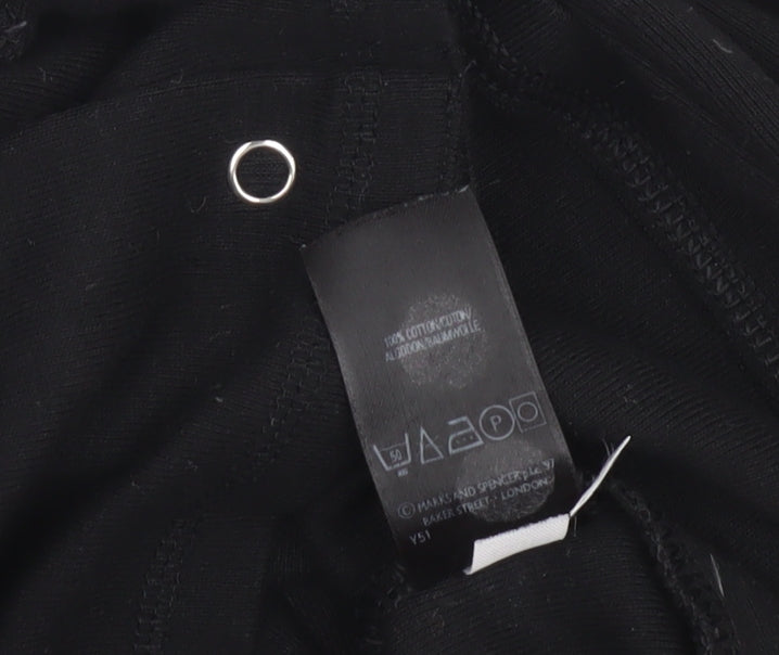 This classic Marks and Spencer Women’s black button-up cardigan offers a timeless addition to your wardrobe. Crafted from 100% cotton, it ensures natural breathability, softness, and comfort for everyday wear. The premium knit fabric gives a smooth texture and structured fit, while maintaining a lightweight feel ideal for layering. Designed with a crew neckline and long sleeves, the simple, minimalist silhouette pairs effortlessly with blouses, camisoles, and dresses alike. Its versatile black colour adds an elegant, polished touch suitable for a wide range of occasions — from office workwear to smart-casual outings. Featuring a front button closure with round silver-tone buttons, this cardigan blends sophistication with practicality. The cotton material provides durability and easy care, being fully machine washable and long-lasting in colour and shape. With a tailored regular fit, this piece ensures both style and comfort, flattering various body types. The solid colour design makes it an effortless match with patterned or plain bottoms, adding excellent layering potential through the transitional seasons of autumn, spring, and winter. Originally created under the iconic St Michael label by Marks and Spencer, this garment reflects the brand’s legacy for quality and reliability. Perfect for smart-casual and workwear settings, this cardigan will suit anyone seeking comfort, class, and timeless simplicity. Slight signs of wear only add to its vintage charm and authenticity. Elevate your everyday style with this elegant and durable wardrobe essential from Marks and Spencer.