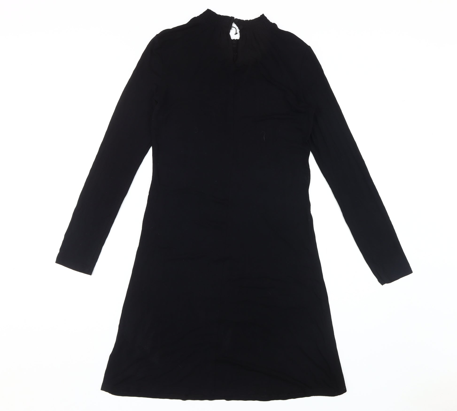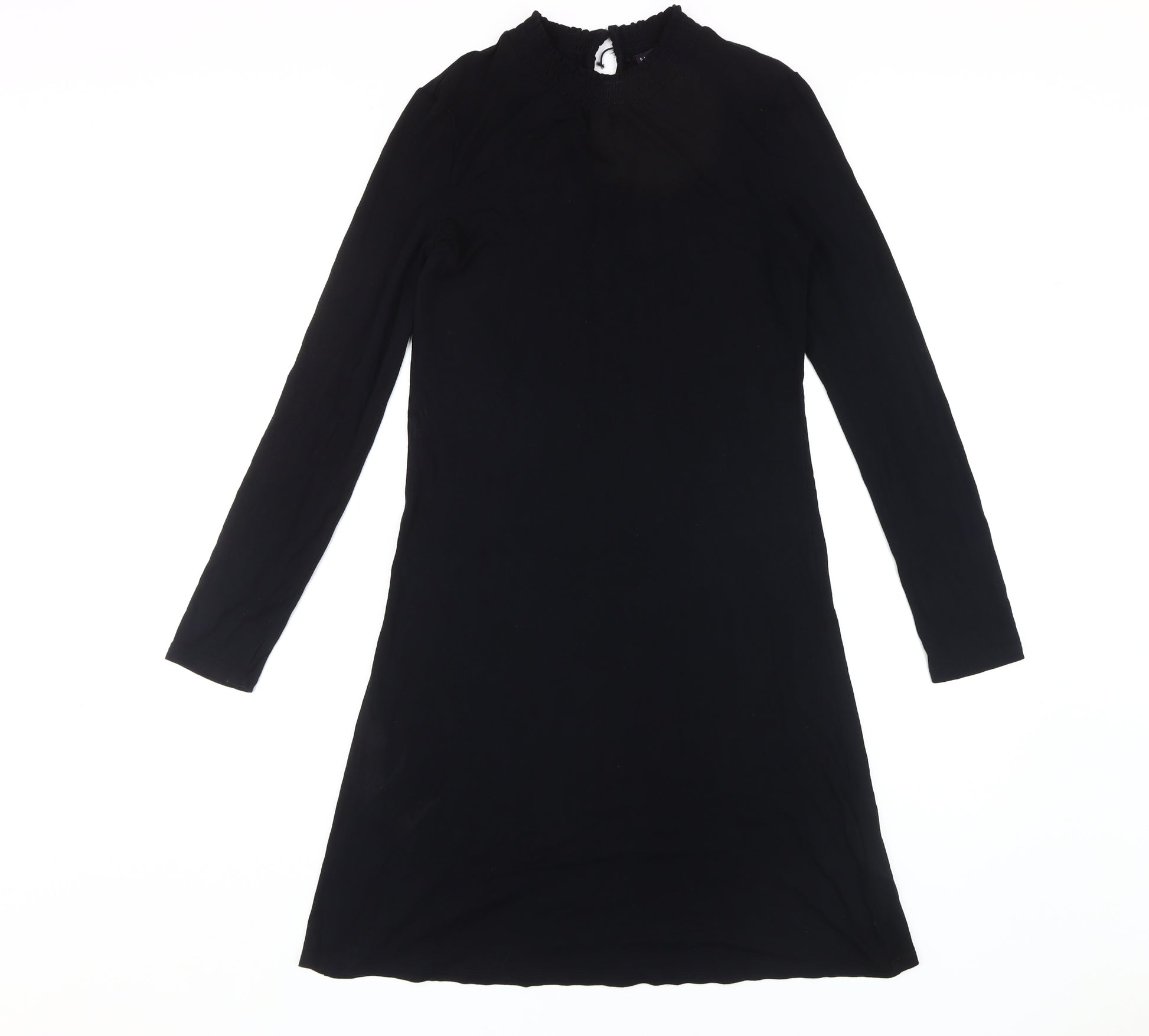 This elegant Marks and Spencer black dress is a timeless addition to any wardrobe. Designed for women with a UK size 6 fit, it offers a sleek silhouette with long sleeves, perfect for versatile wear. Made primarily from viscose with a hint of elastane, the material provides a comfortable stretch while maintaining its shape. The dress is machine washable, ensuring easy care and longevity. Its minimalist design makes it suitable for various occasions, whether you’re heading to a business meeting or an evening out. The classic black color enhances its adaptability, allowing for effortless styling with different accessories or footwear. Despite being pre-loved, the dress remains in excellent condition, with no visible flaws. Embrace understated elegance with this versatile piece that combines comfort and style seamlessly.