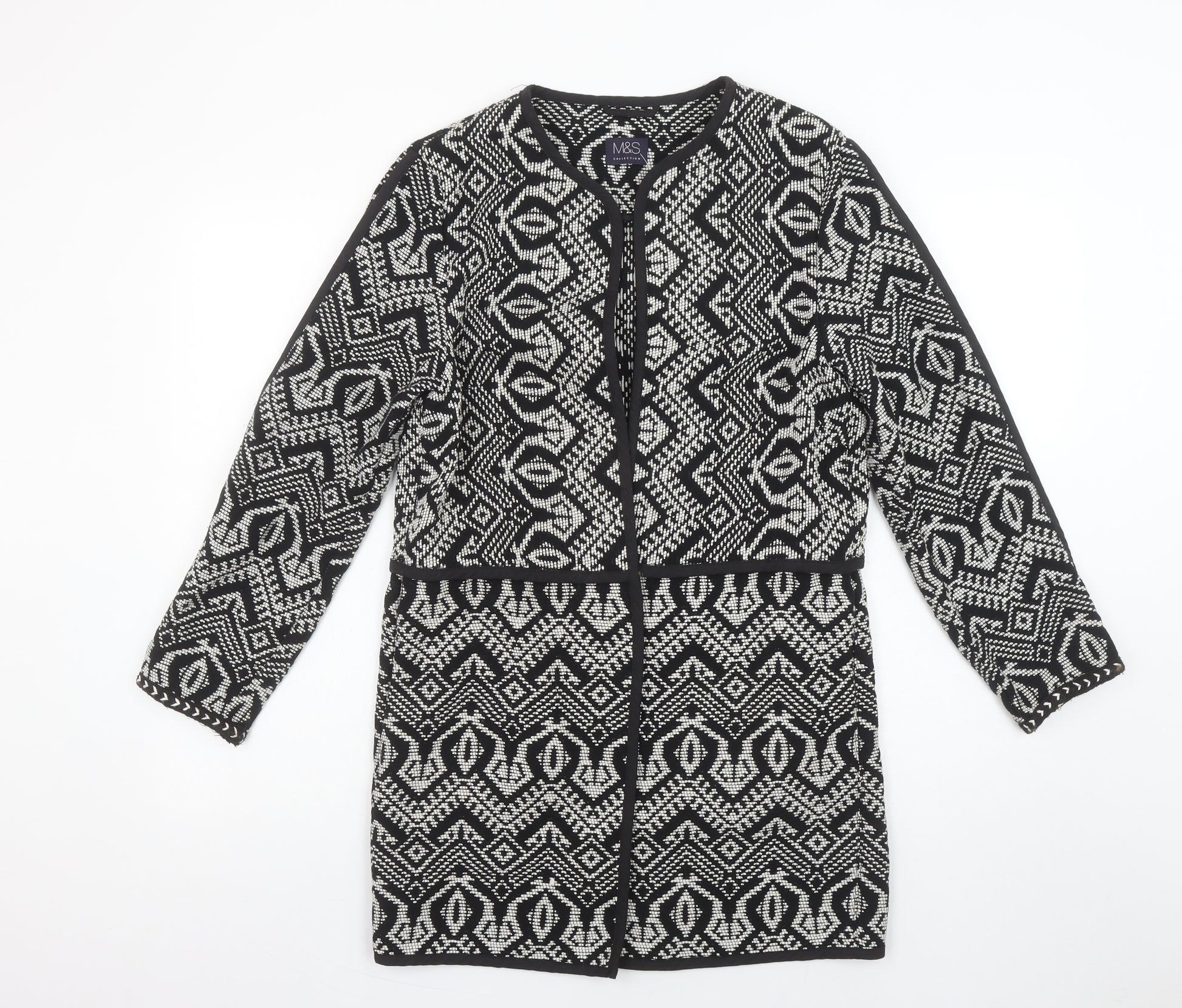 Women’s Black Geometric Knit Long Cardigan Size 8